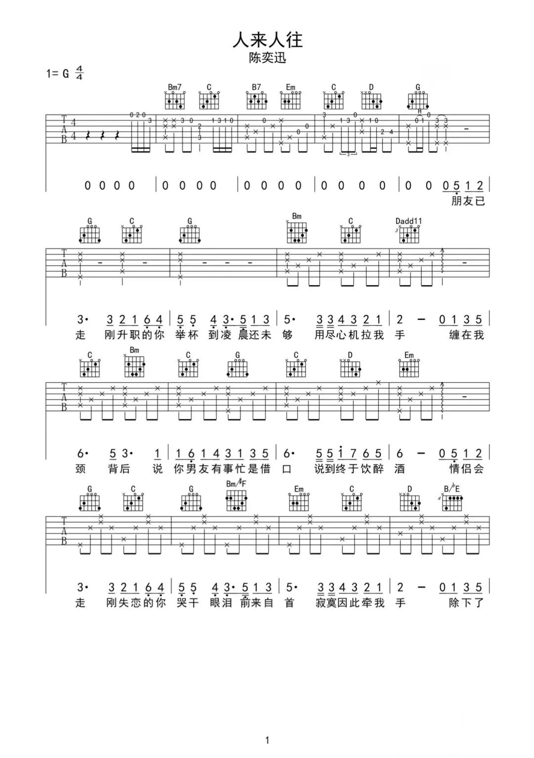 《人来人往》是陈奕迅2002年发行的粤语歌,林夕作词、陈辉阳作曲,收录于《The Line-Up》 。歌曲讲述三角恋故事,以细腻歌词道尽爱而不得的遗憾与豁达 。《谢谢侬吉他编配是英式小调风格,节奏轻快,适合练习扫弦技巧,弹唱时能感受到歌曲里的洒脱。
