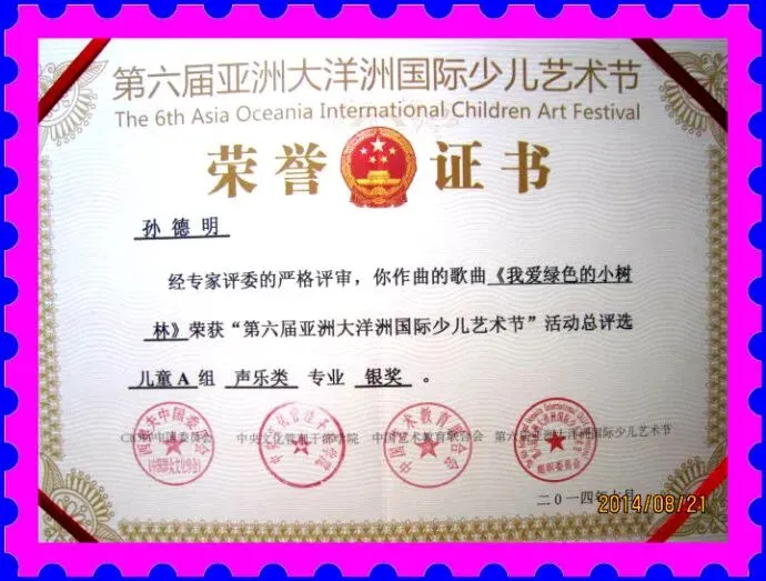 ---第六届亚洲大洋洲国际少儿艺术节银奖歌曲