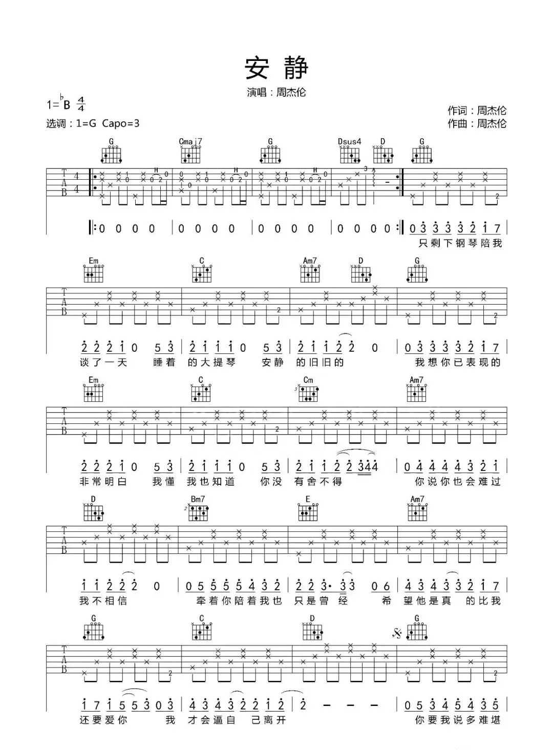 周杰伦《安静》吉他谱