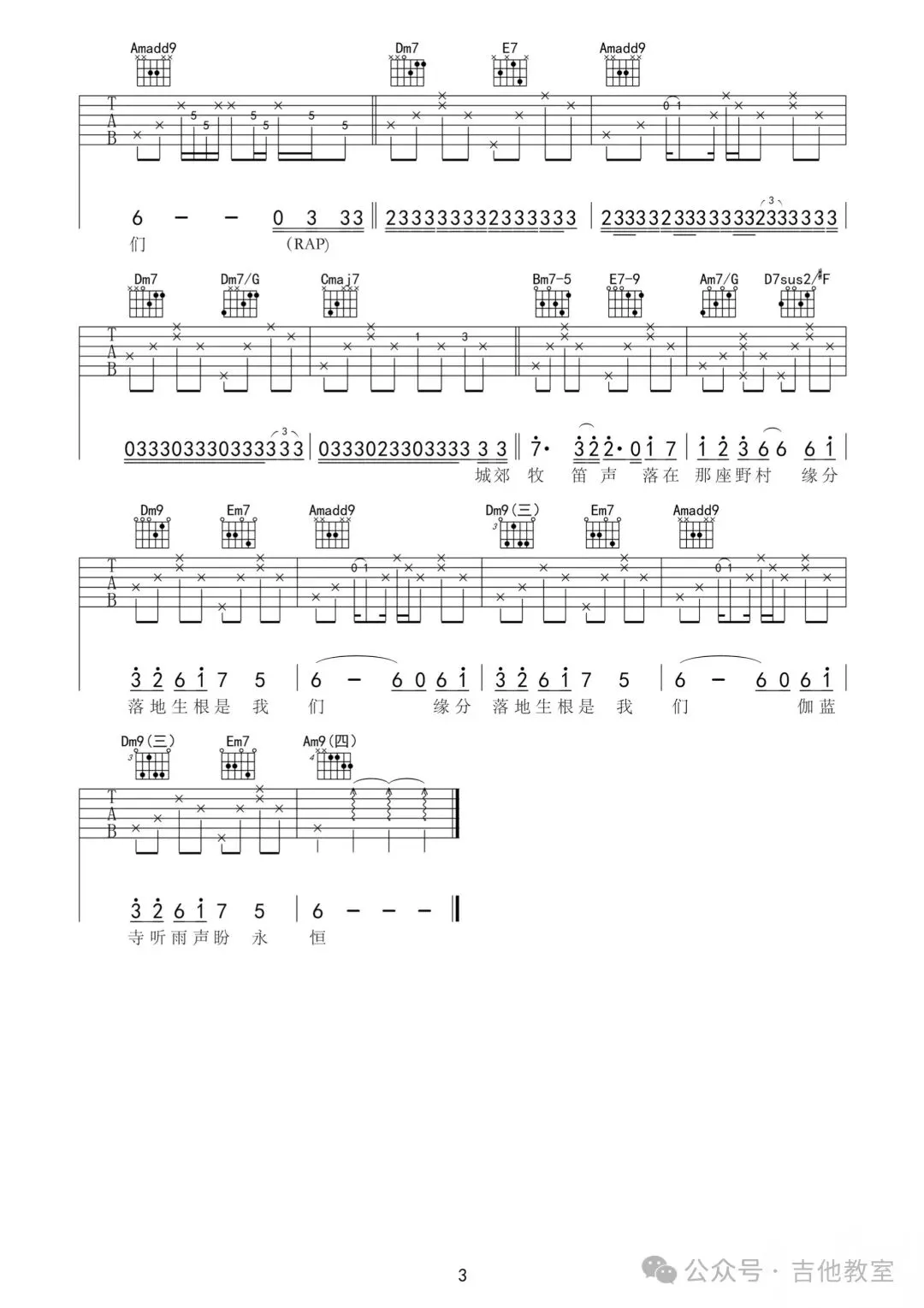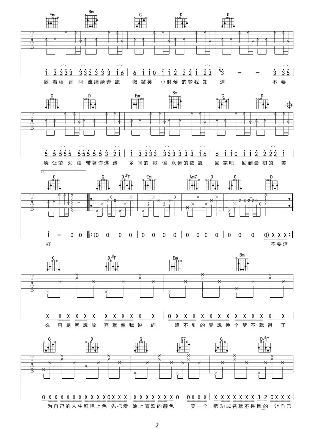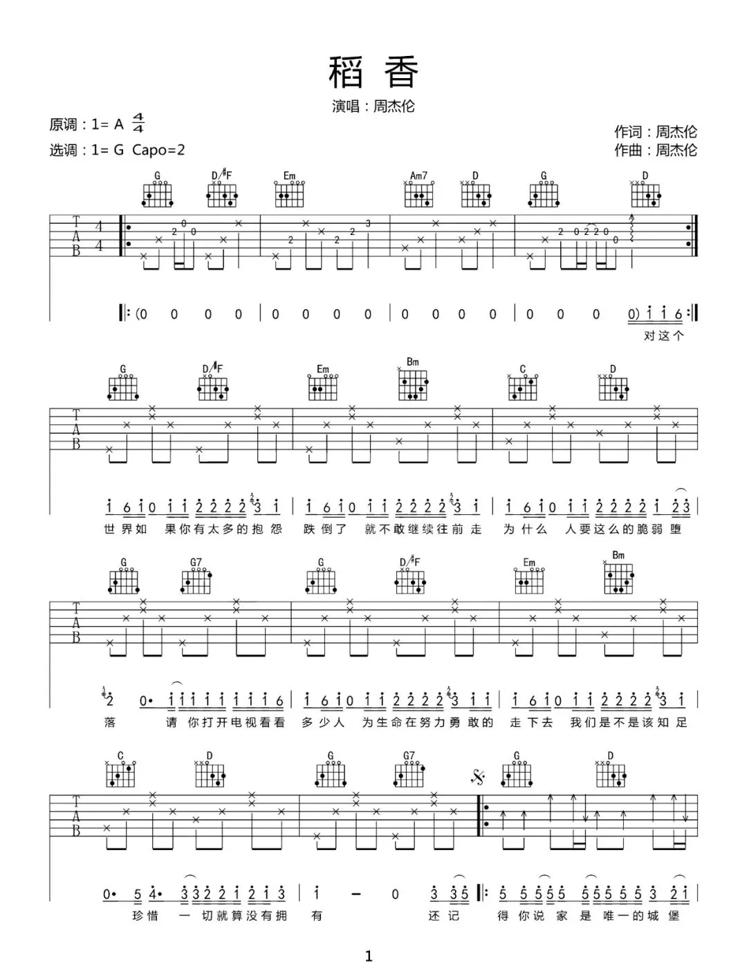 周杰伦《稻香》吉他谱