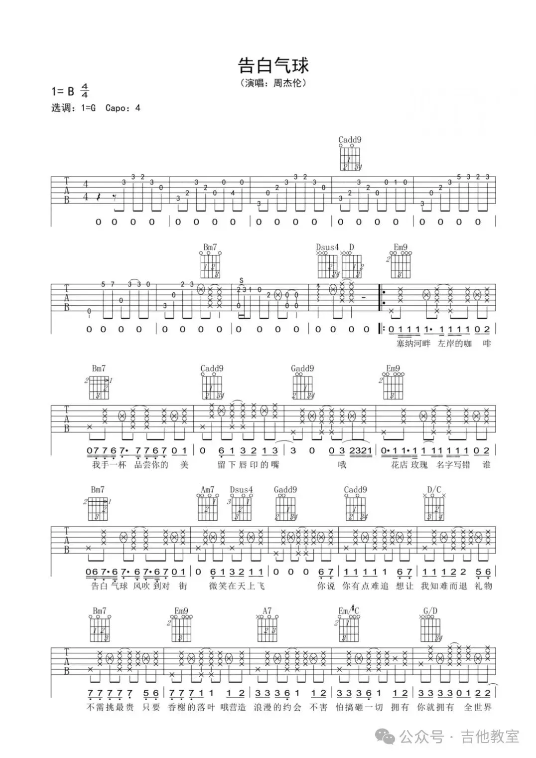 周杰伦《告白气球》吉他谱