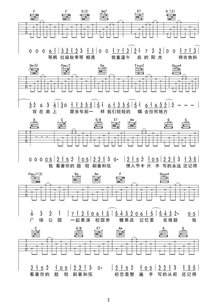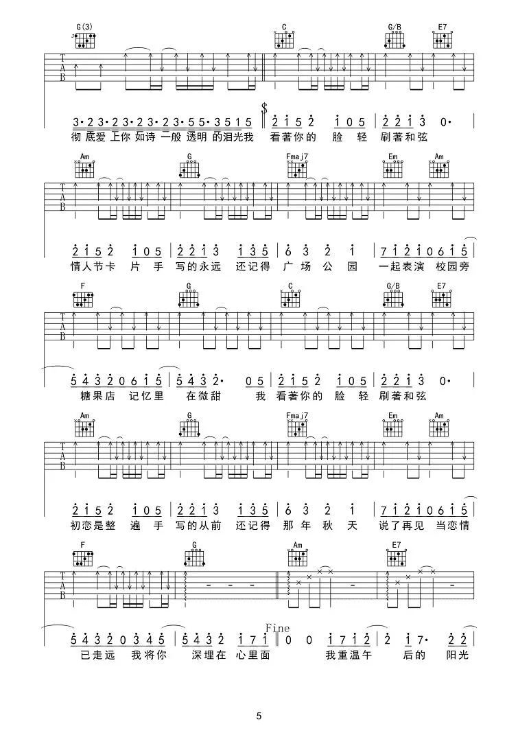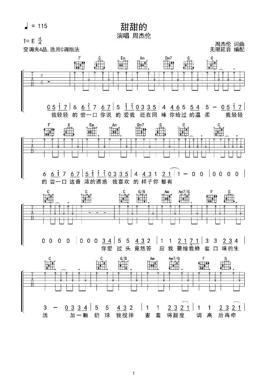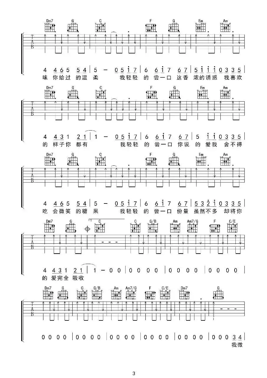 周杰伦《甜甜的》吉他谱