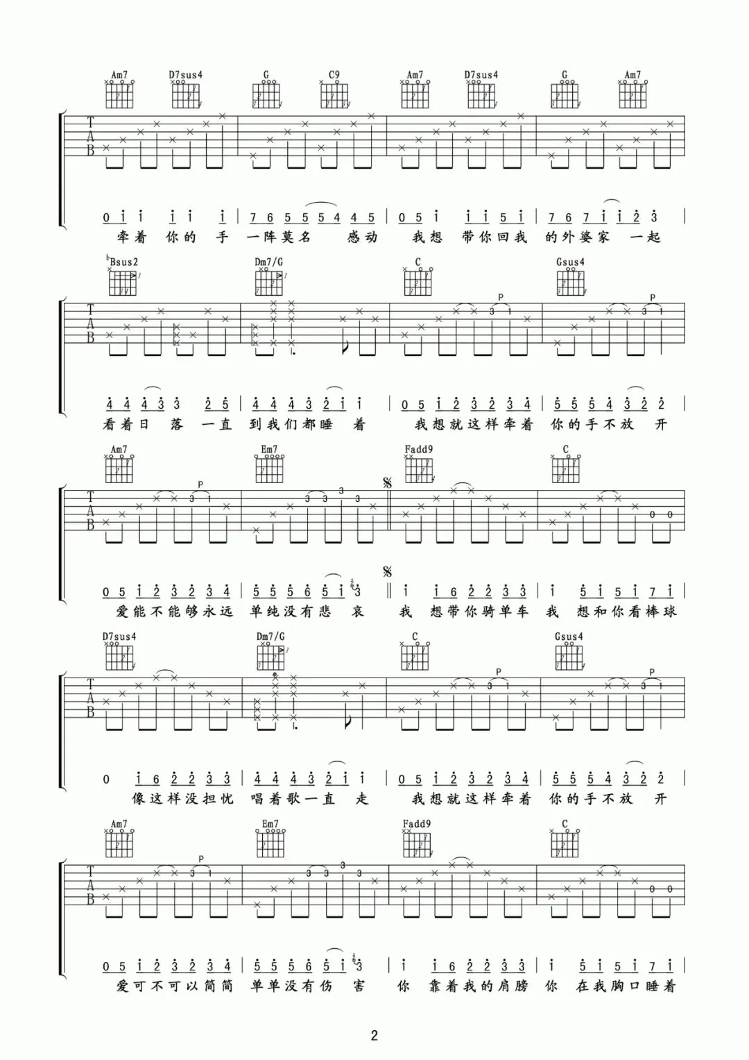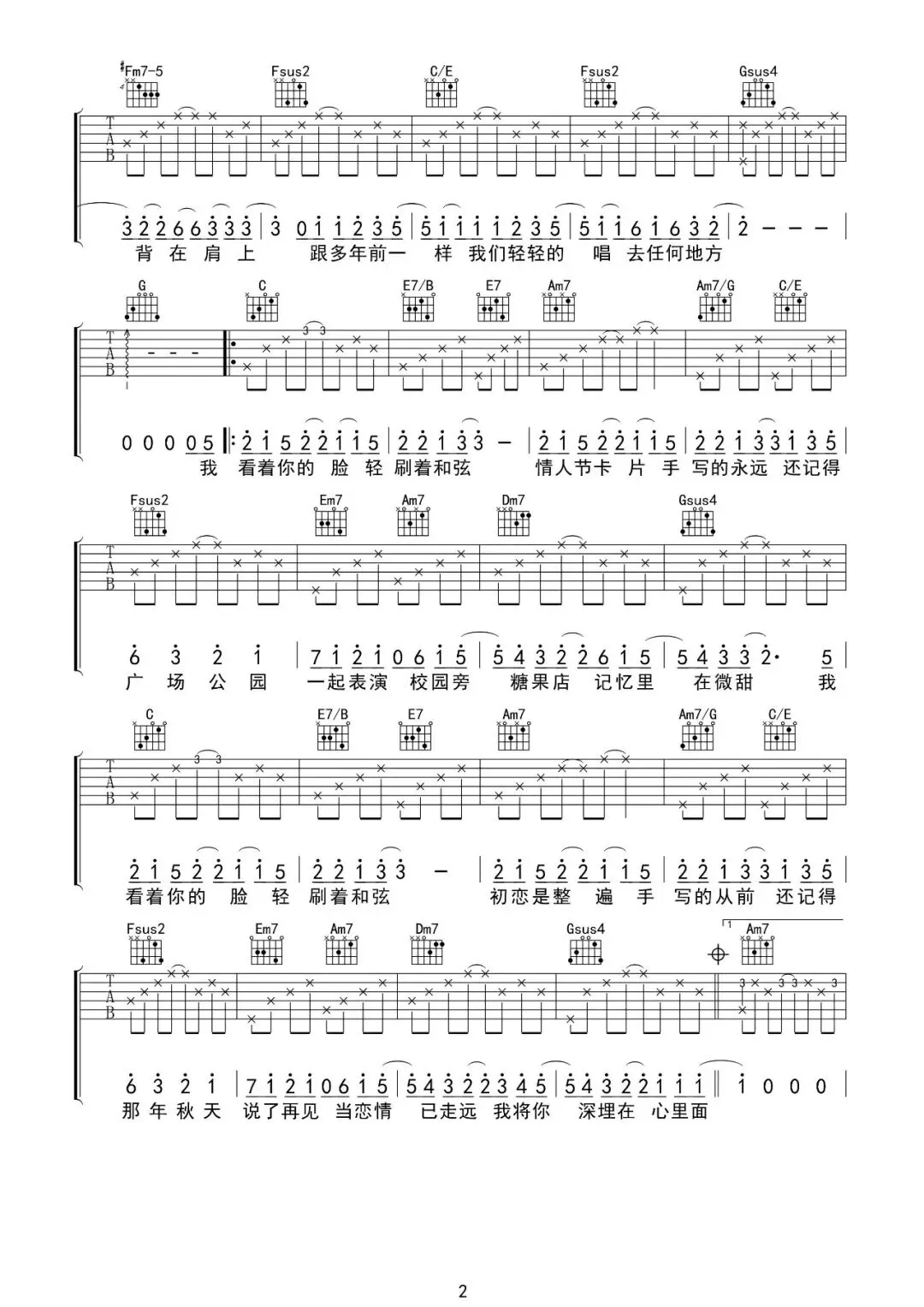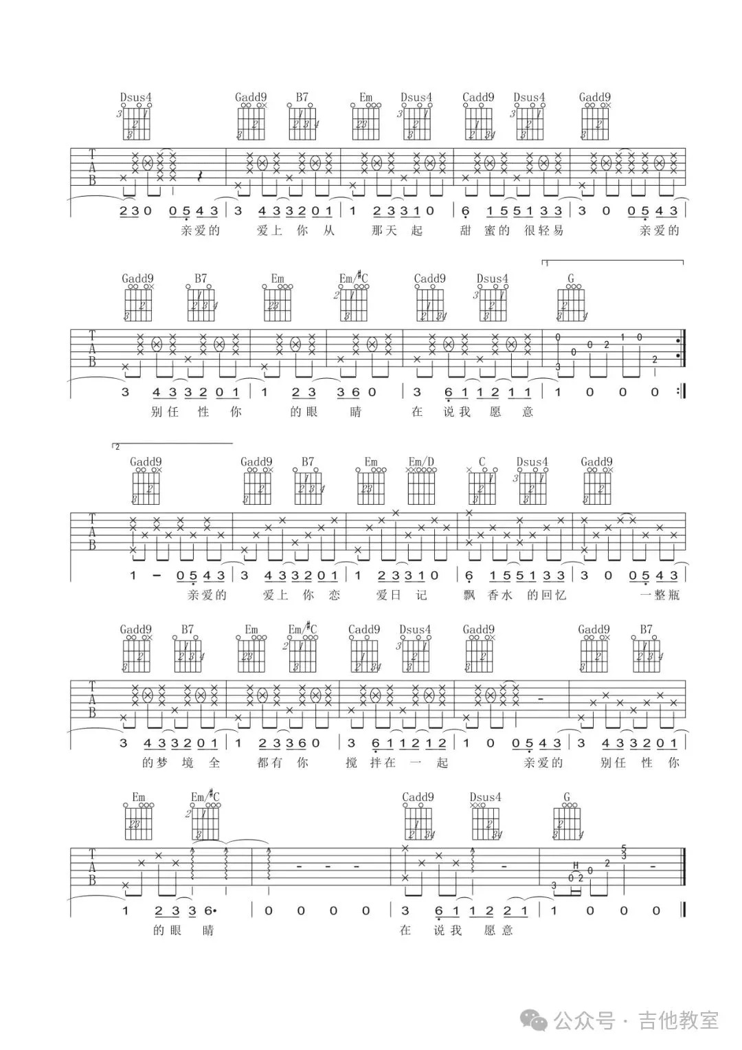 周杰伦《甜甜的》吉他谱
