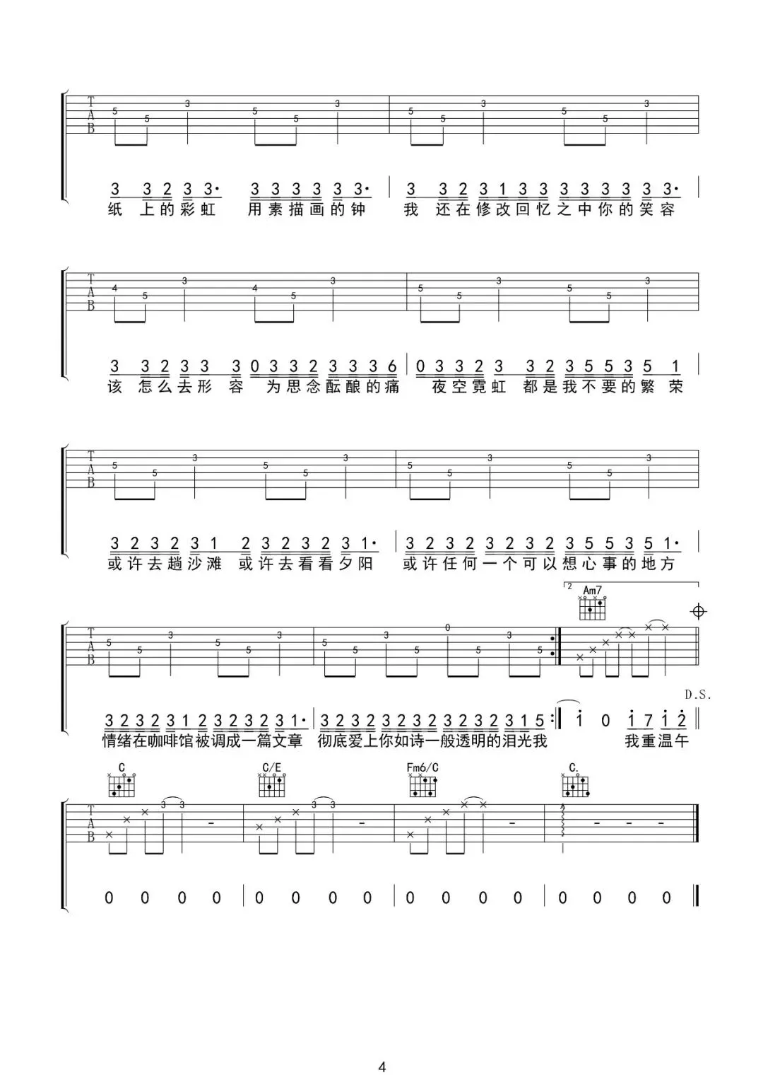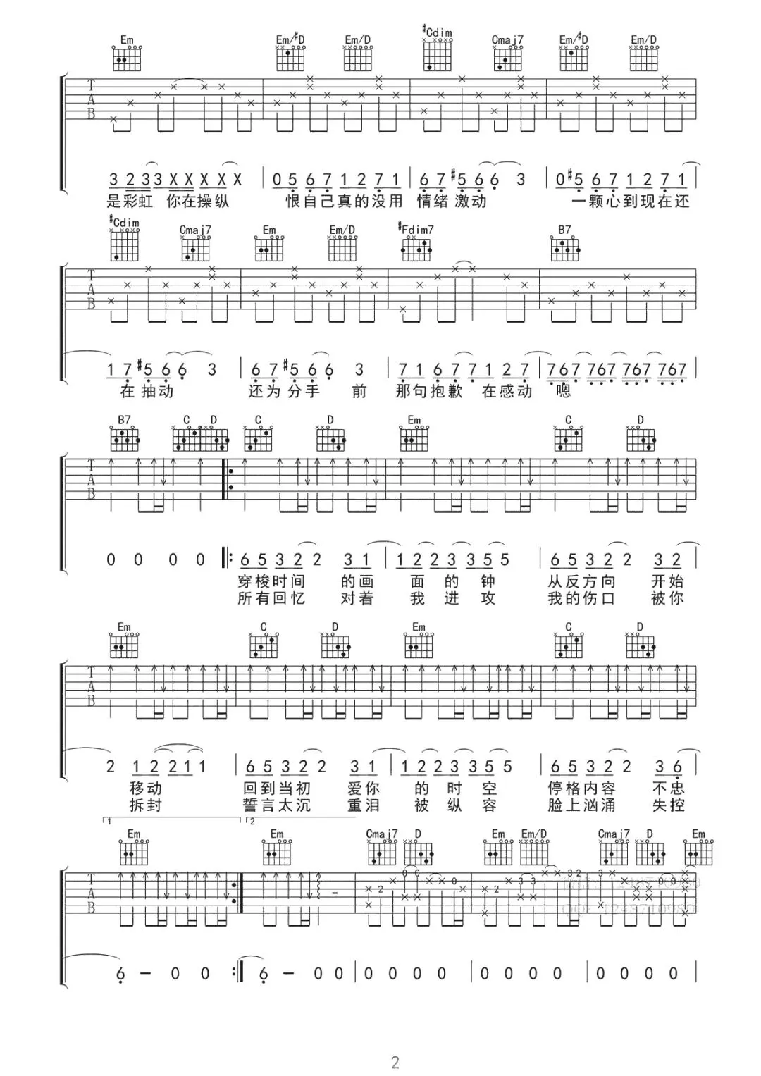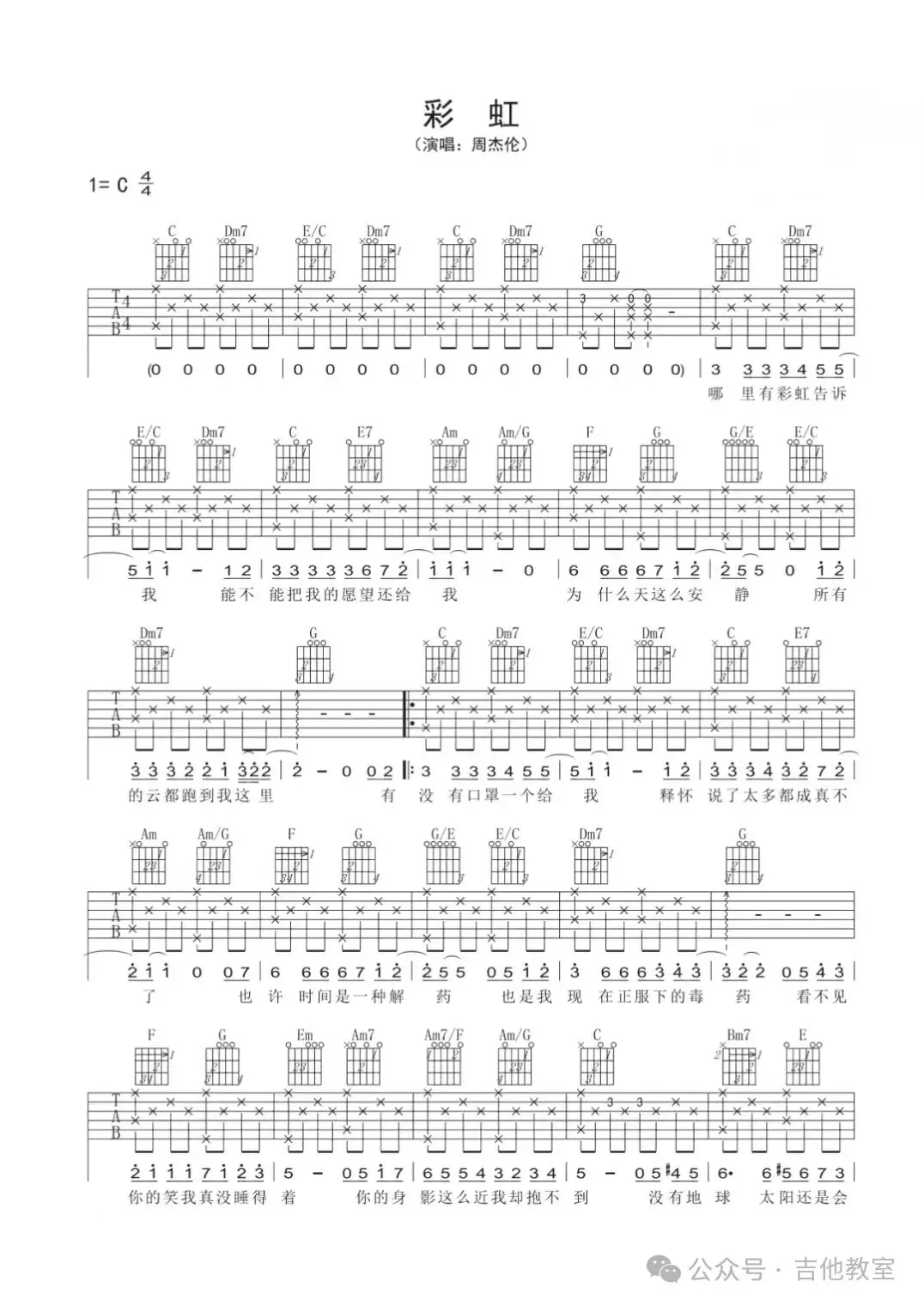周杰伦《彩虹》吉他谱
