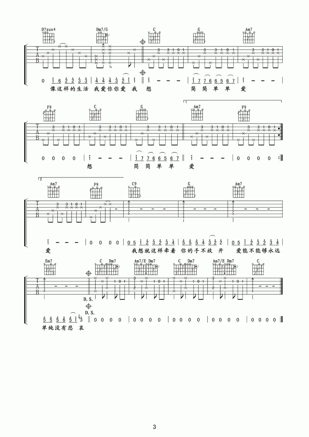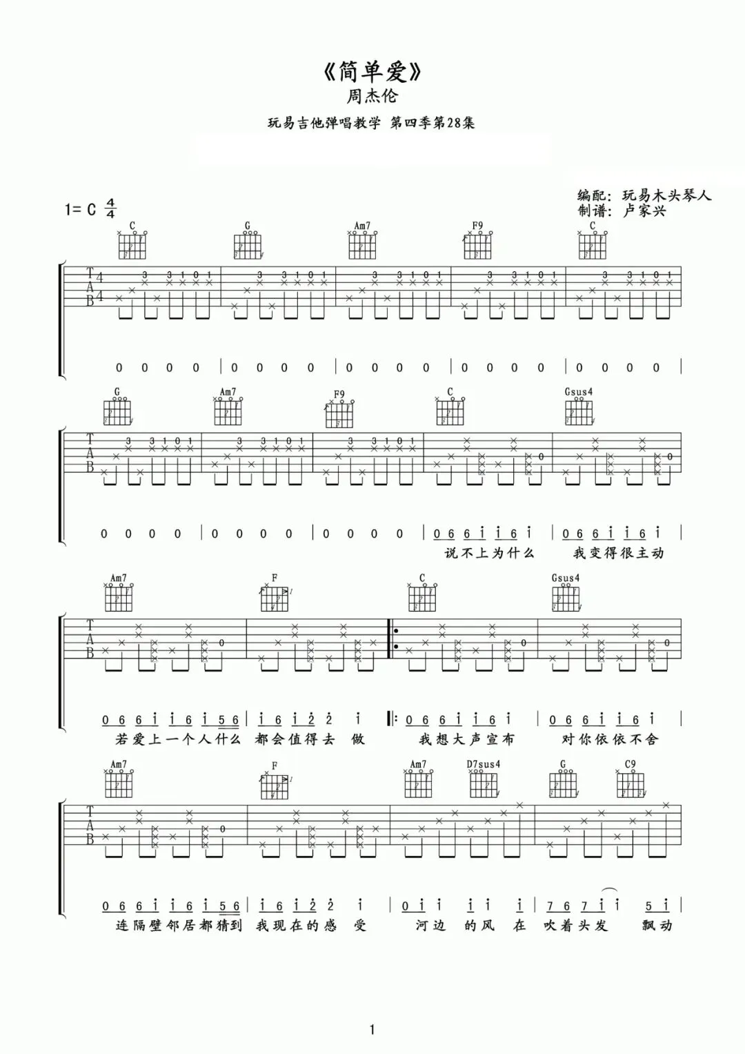 周杰伦《简单爱》吉他谱