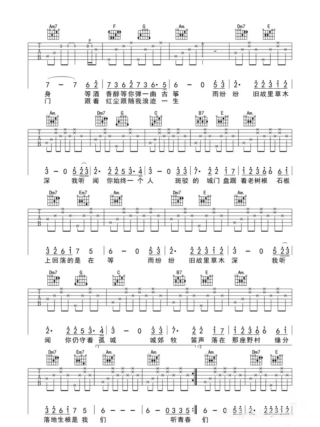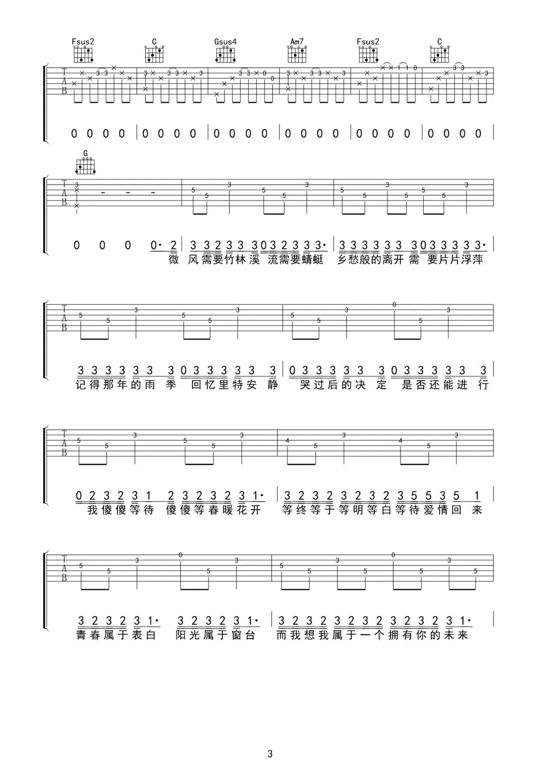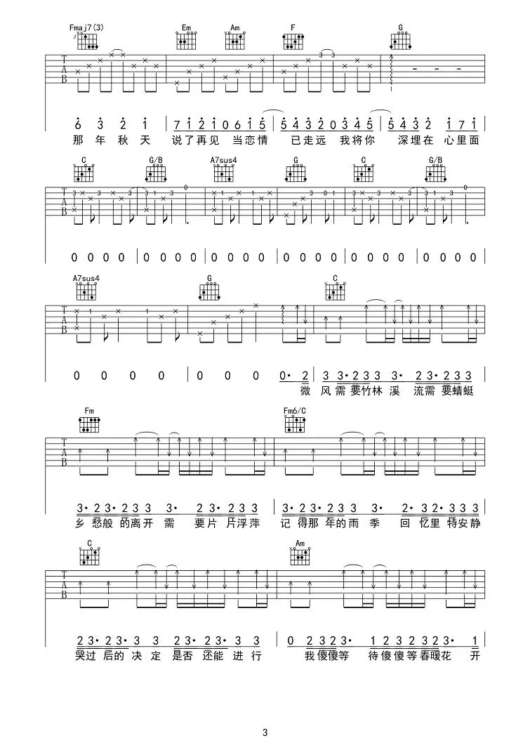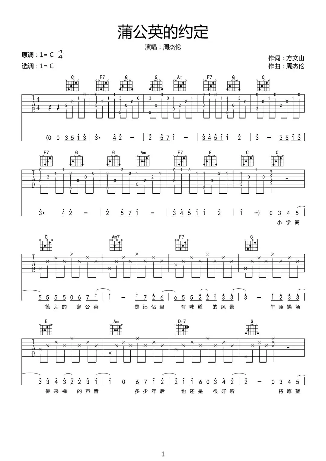 周杰伦《蒲公英的约定》吉他谱