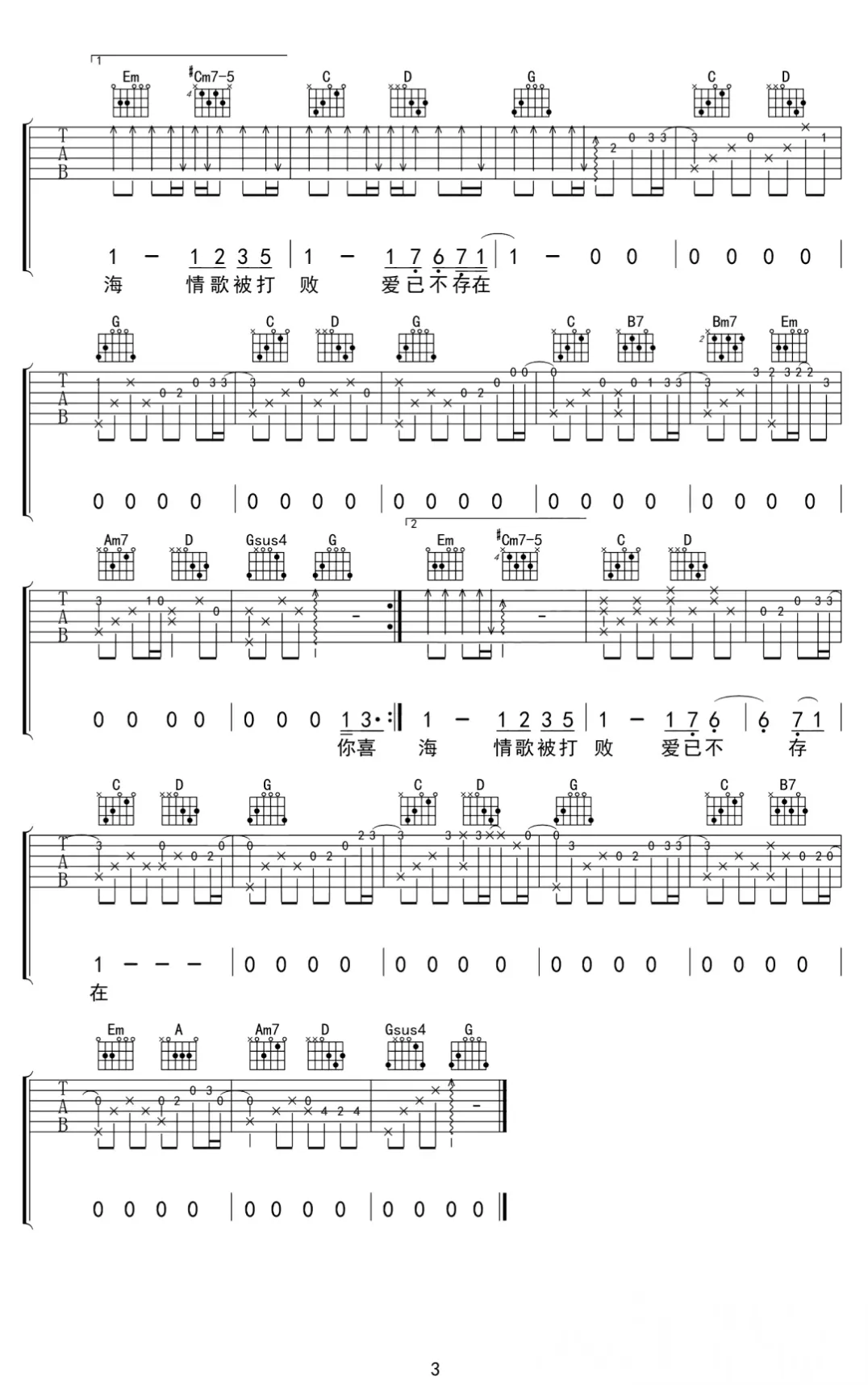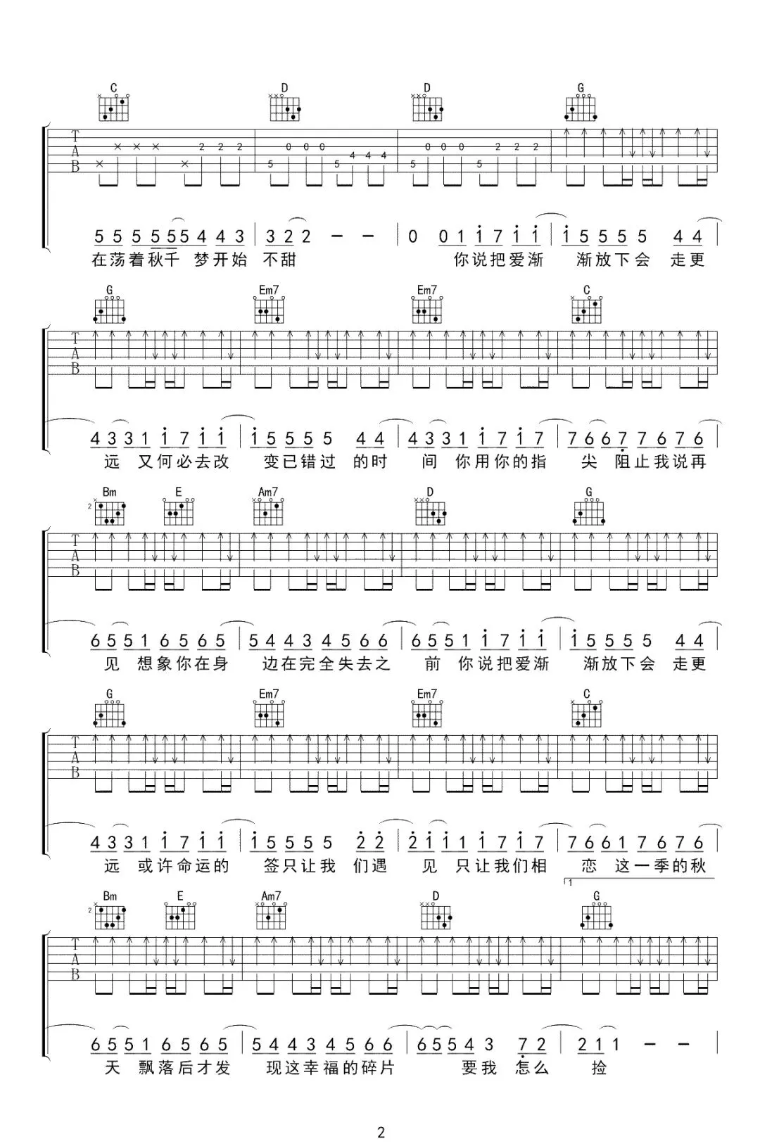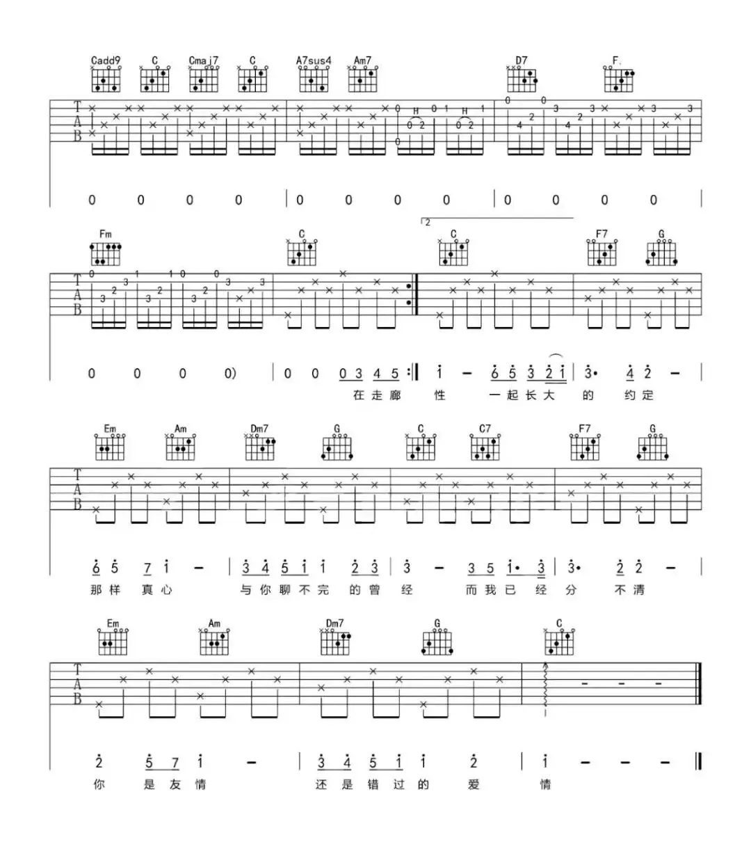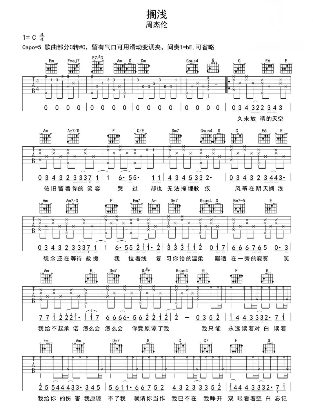 周杰伦《搁浅》吉他谱