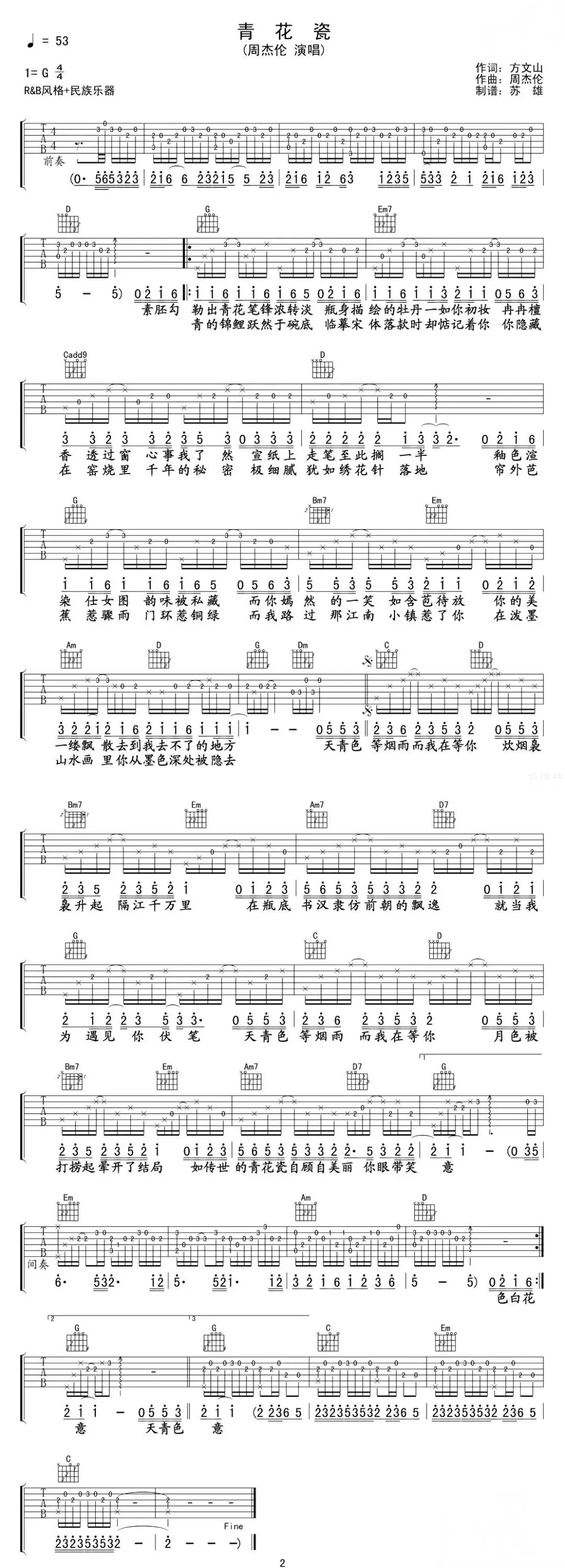 周杰伦《青花瓷》吉他谱
