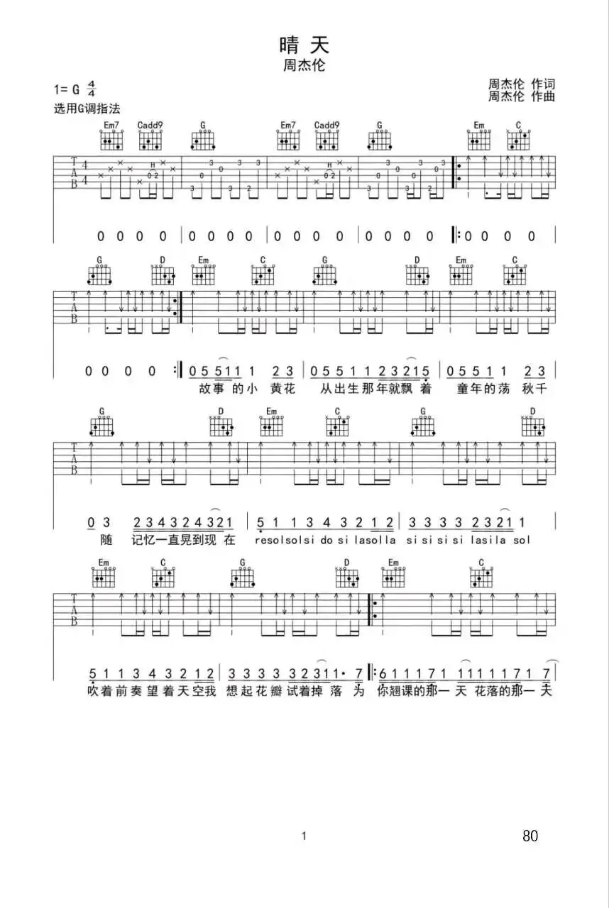 周杰伦《晴天》吉他谱