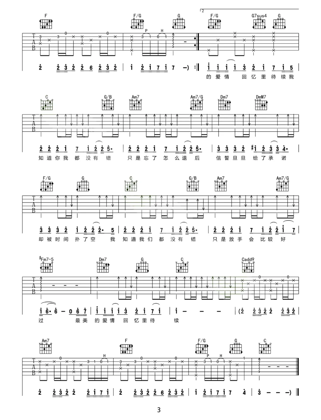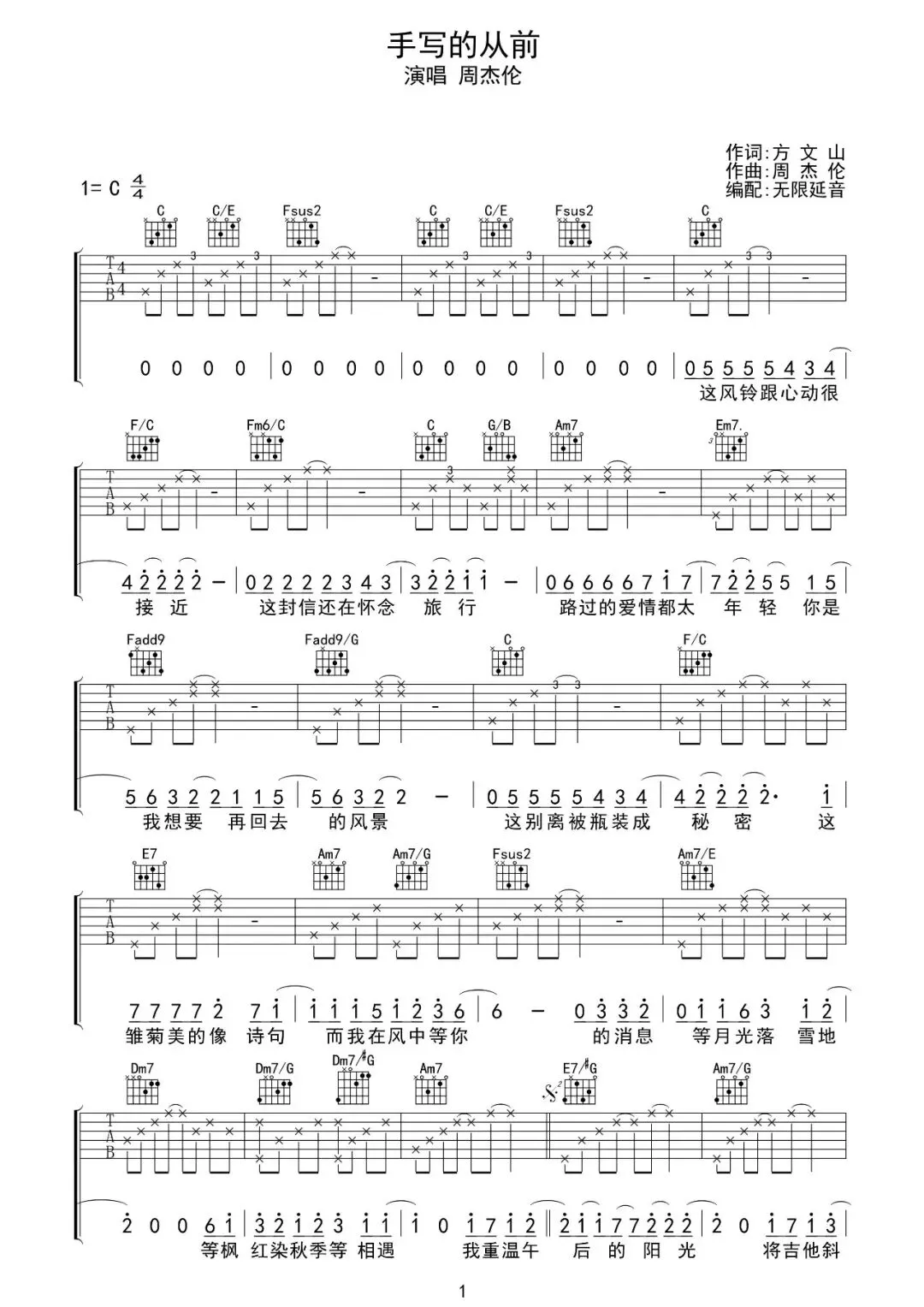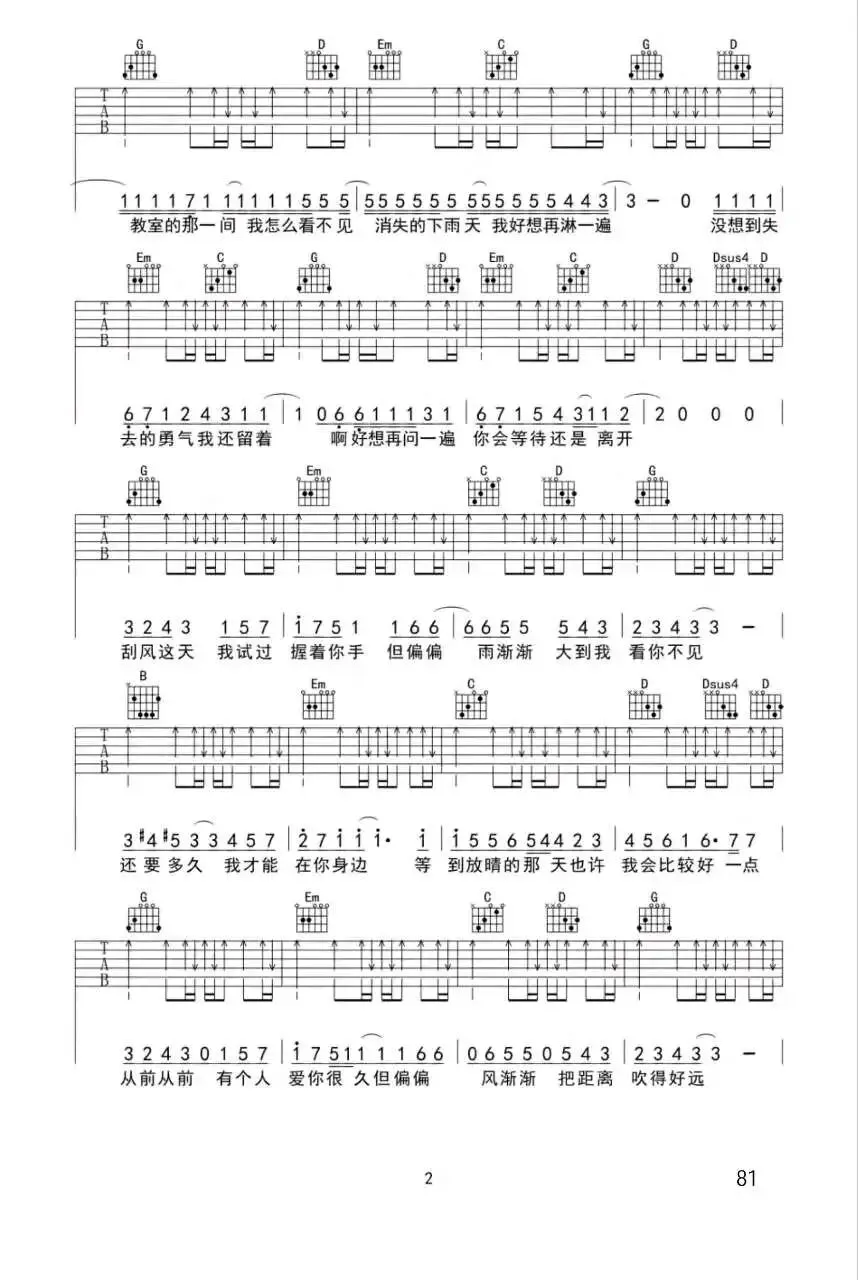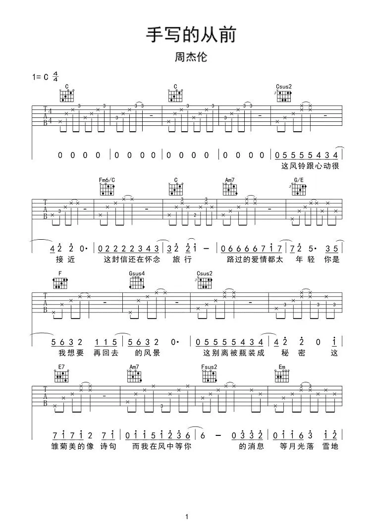 周杰伦《手写的从前》吉他谱