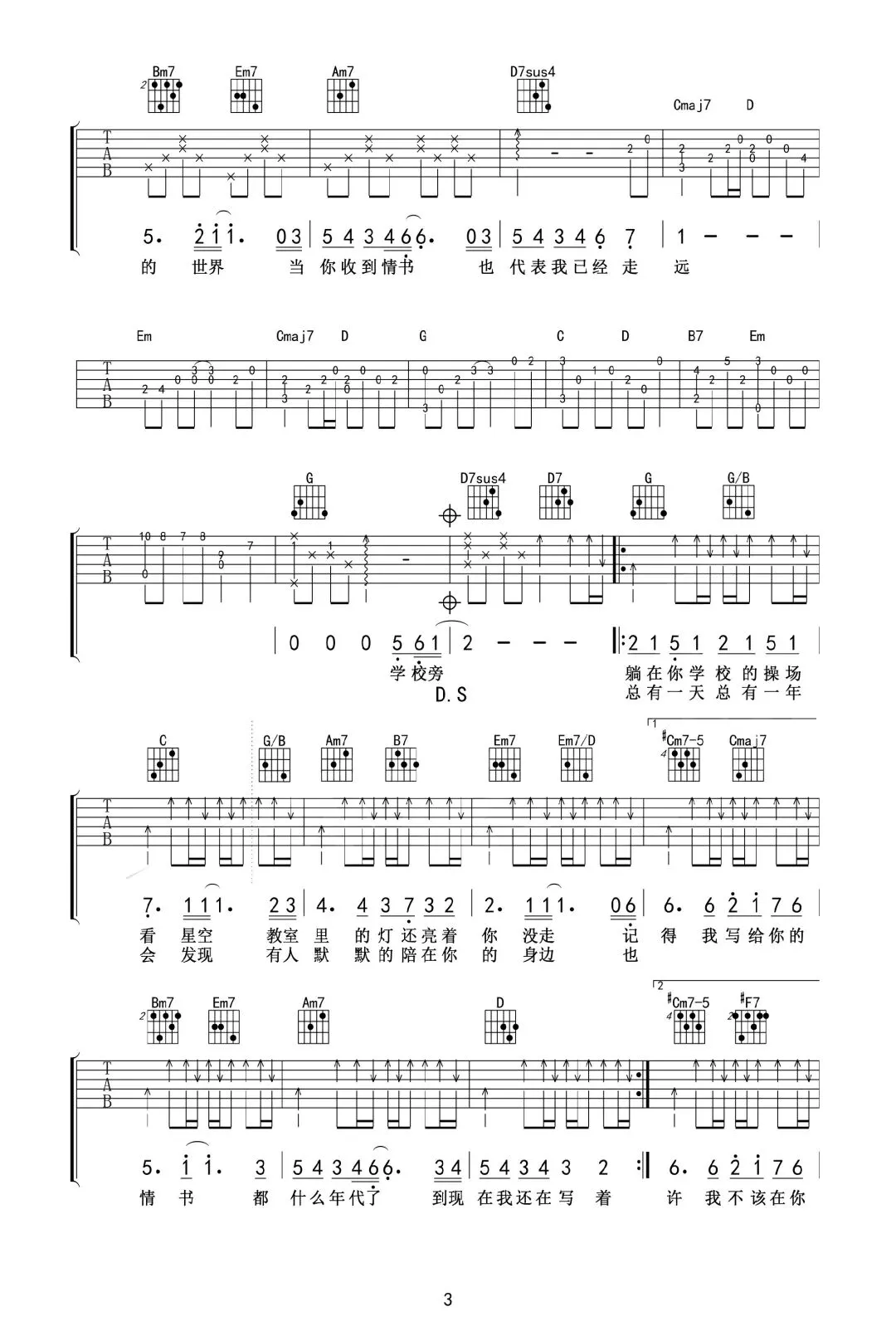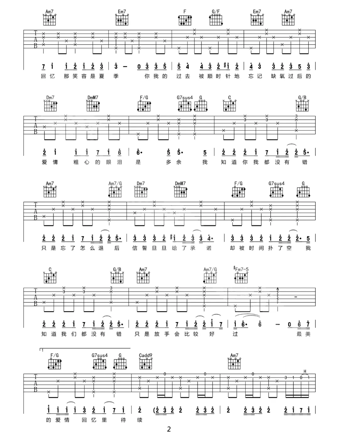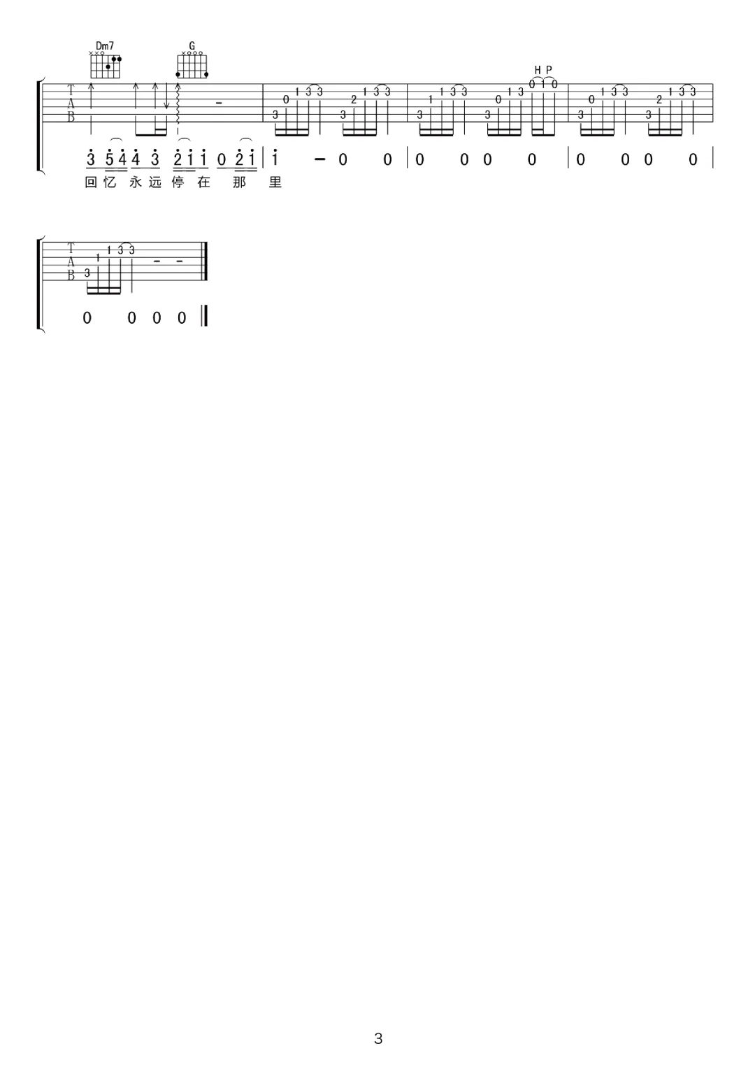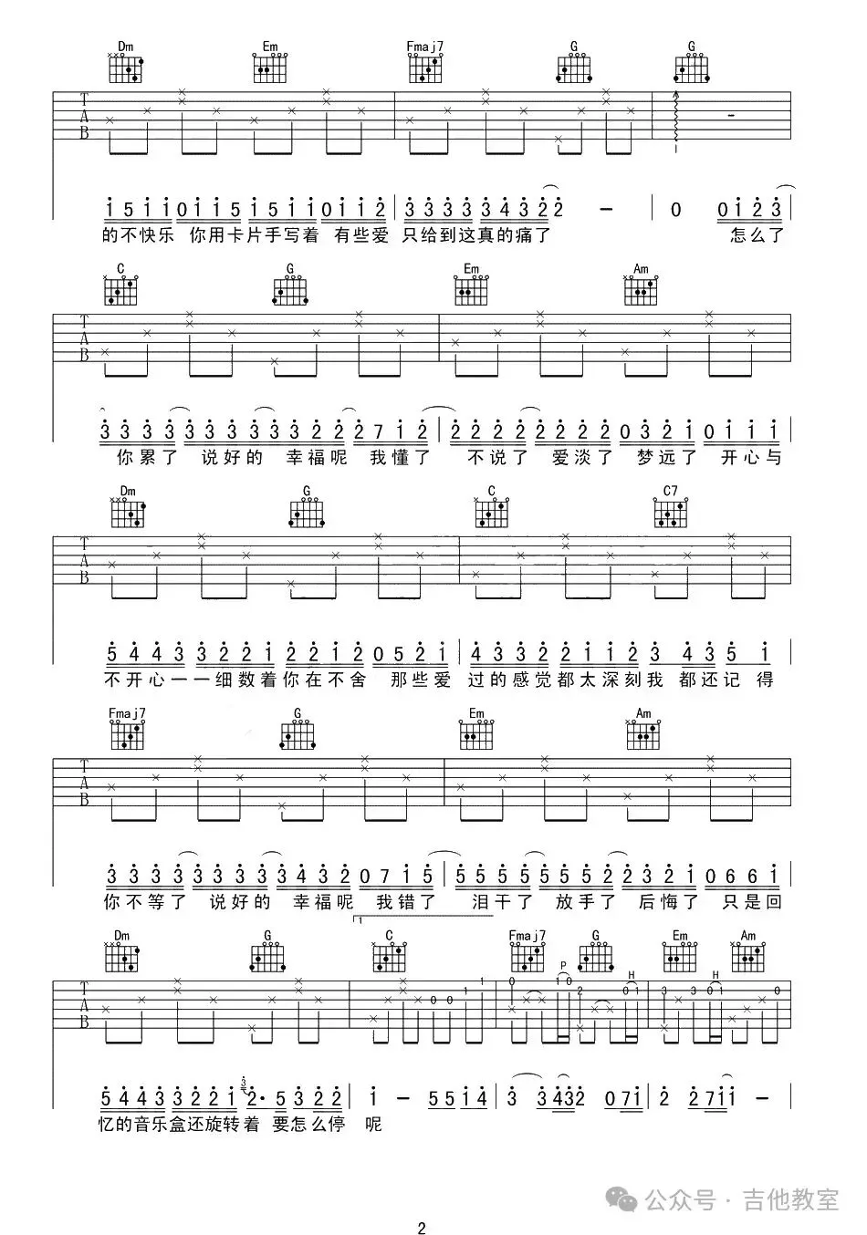 周杰伦《手写的从前》吉他谱