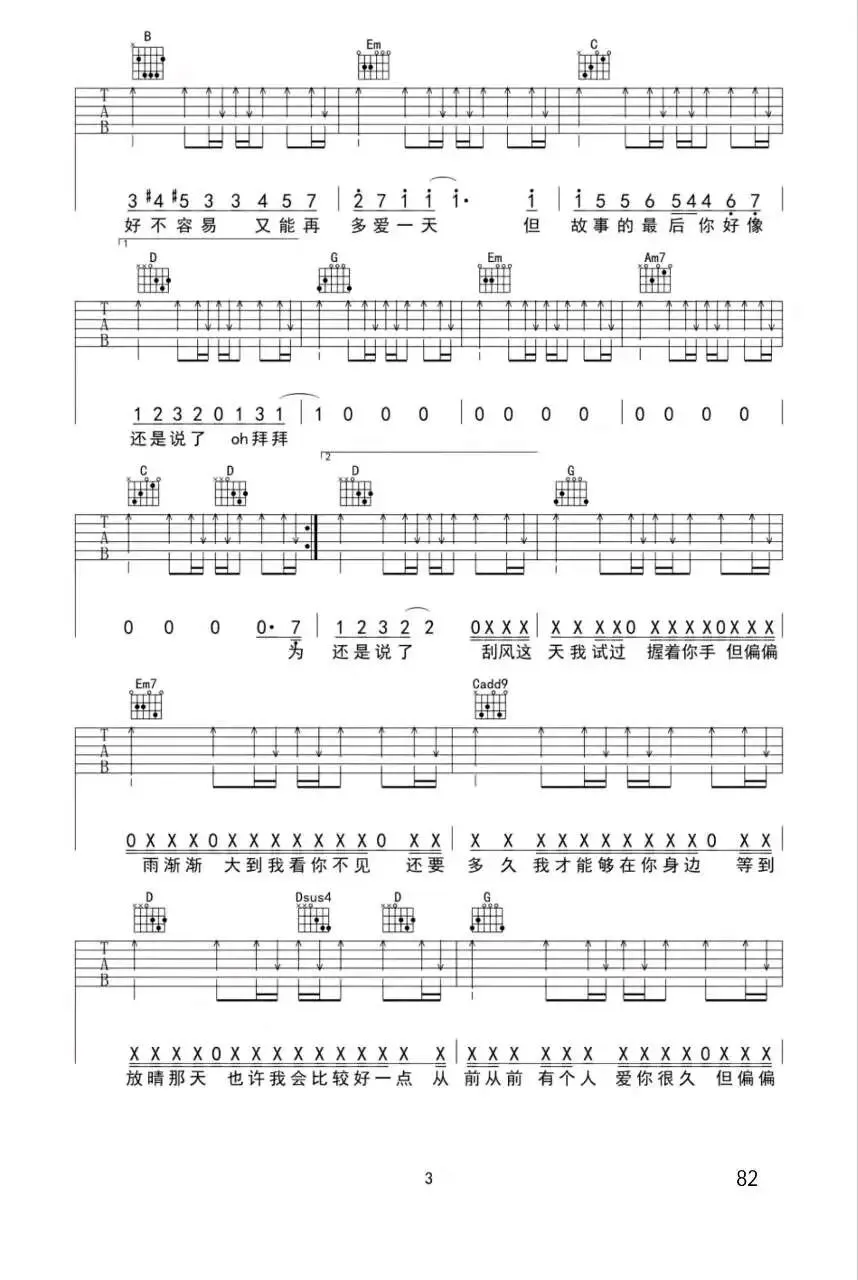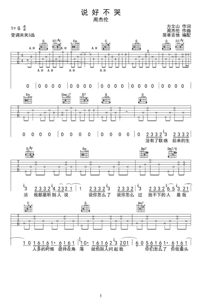 周杰伦《说好不哭》吉他谱