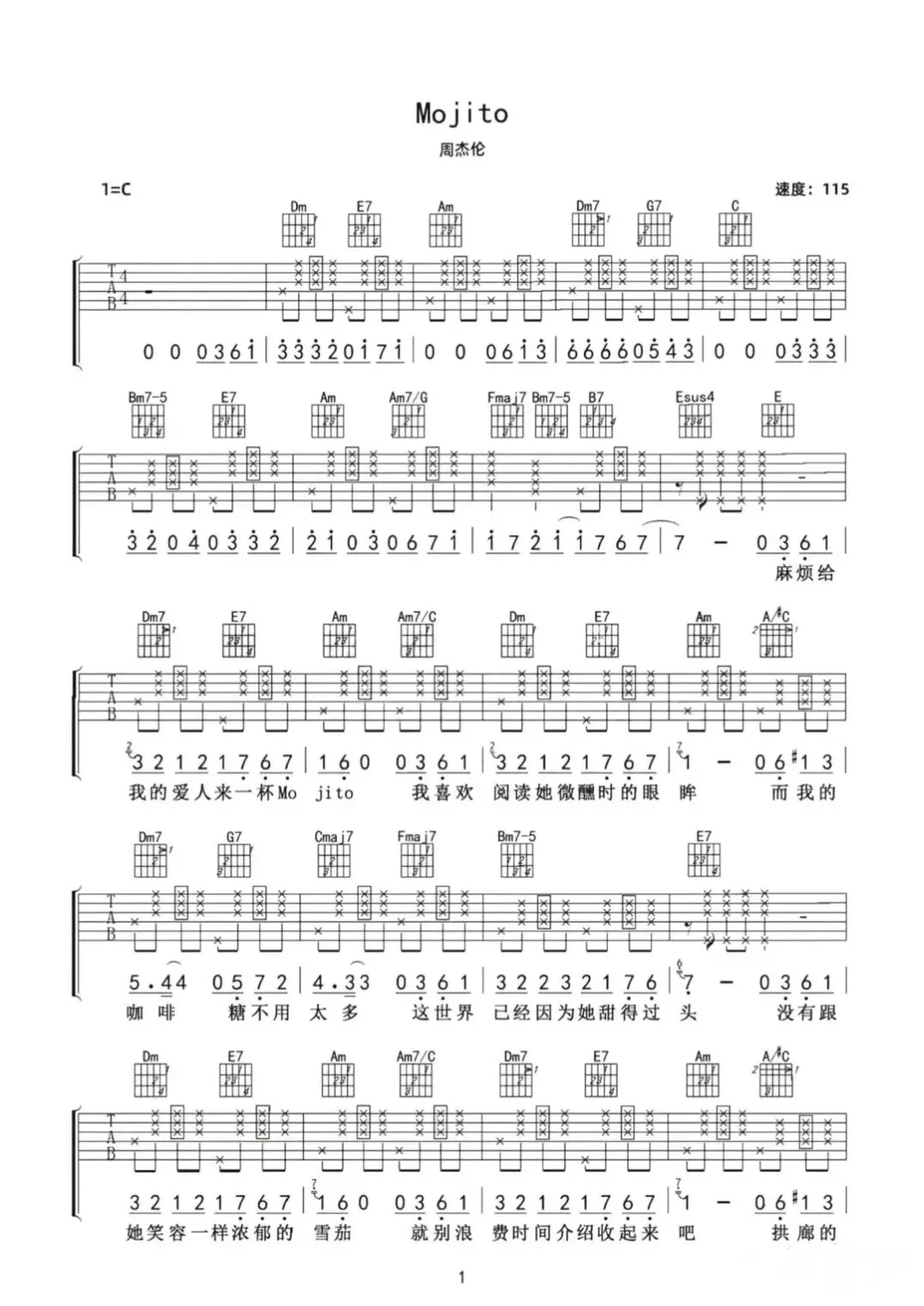 周杰伦《Mojito》吉他谱