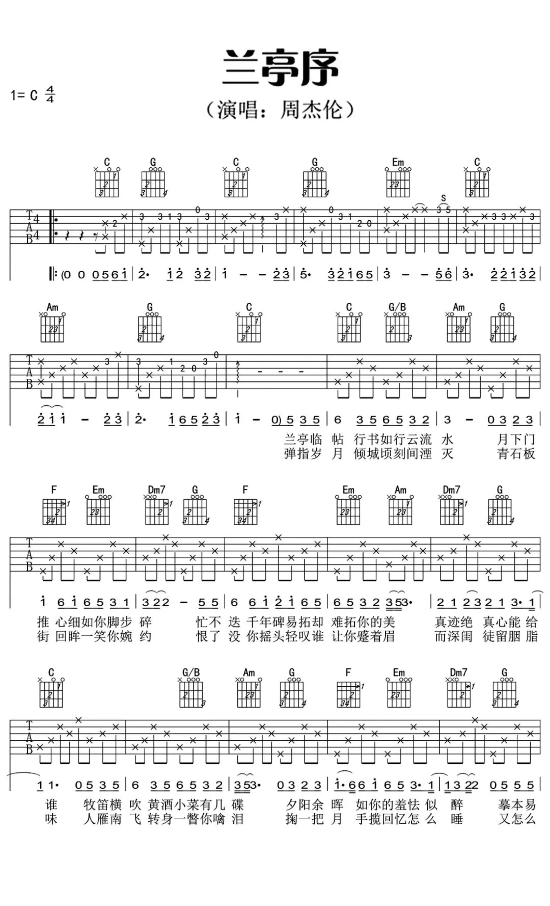周杰伦《兰亭序》吉他谱