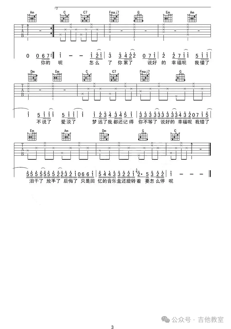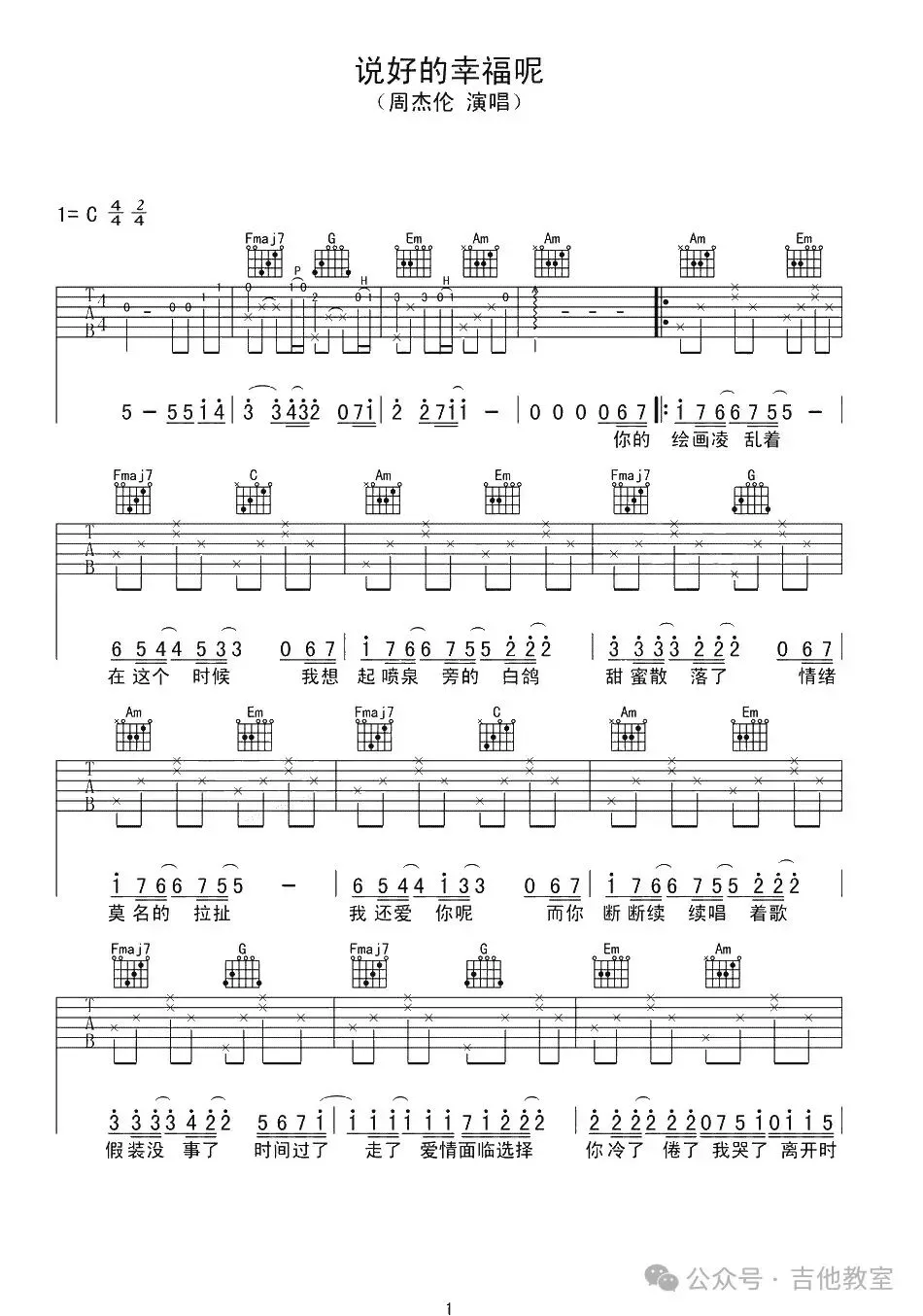 周杰伦《说好的幸福呢》吉他谱