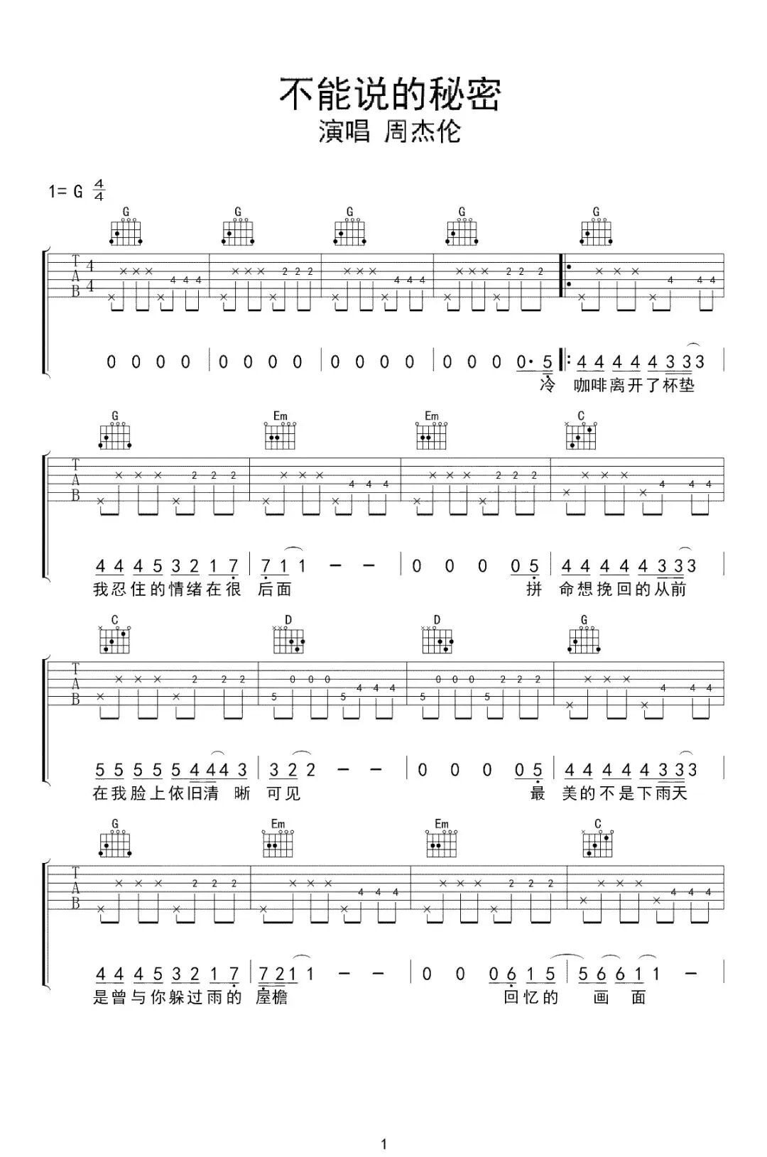 周杰伦《不能说的秘密》吉他谱
