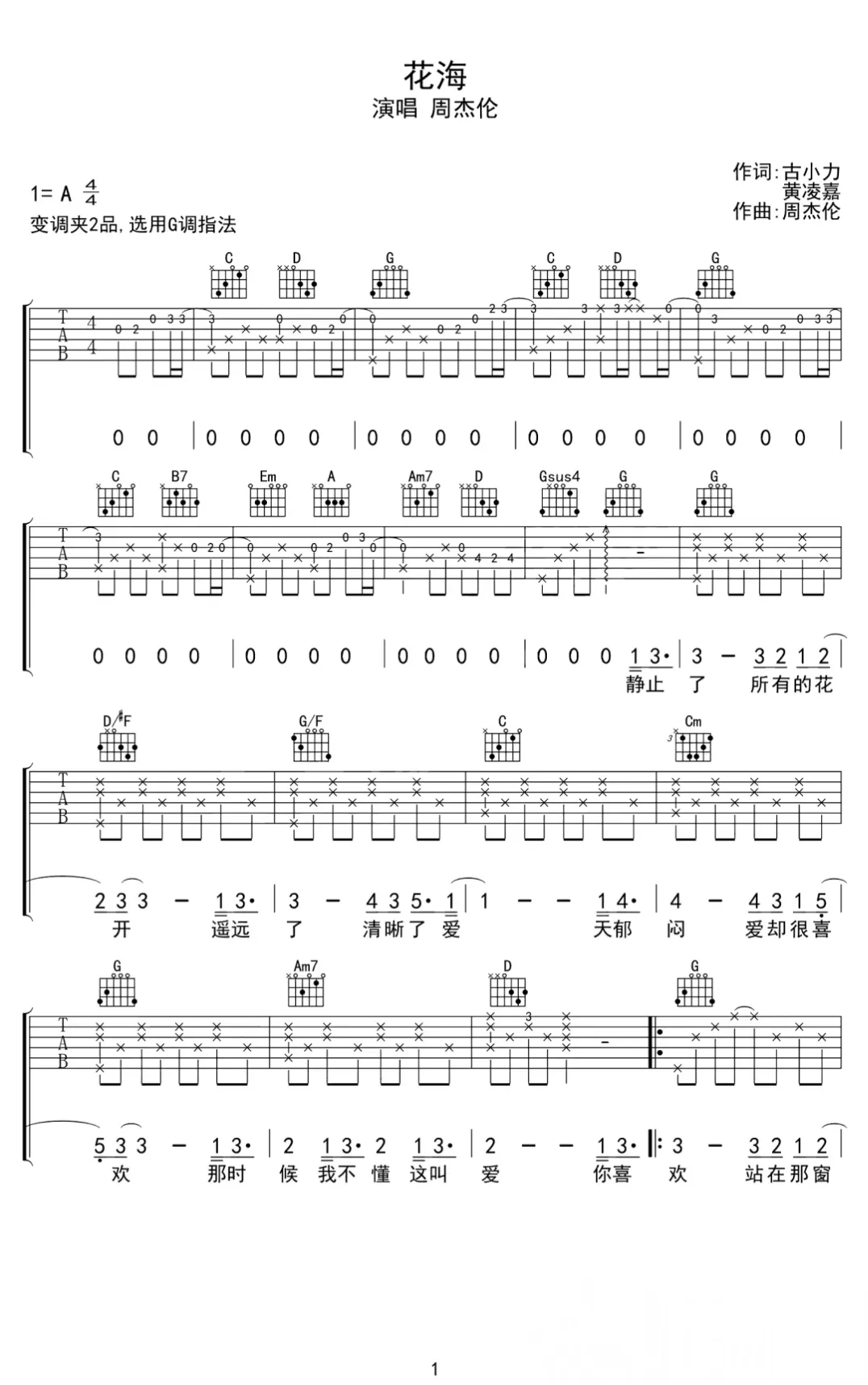 周杰伦《花海》吉他谱