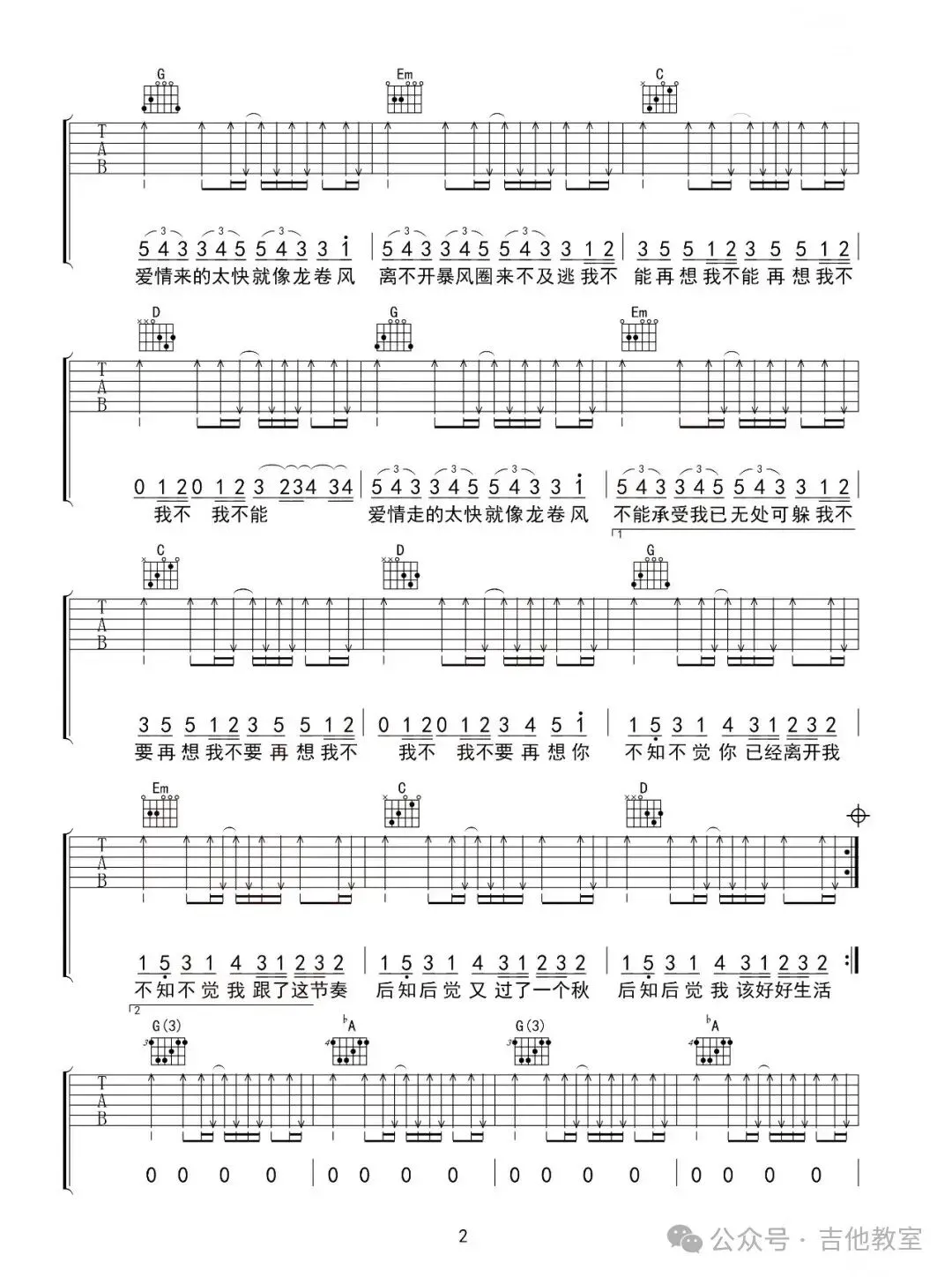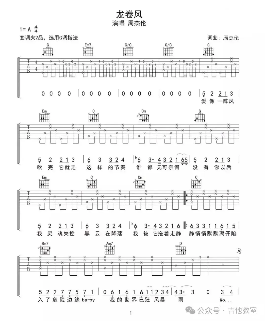 周杰伦《龙卷风》吉他谱