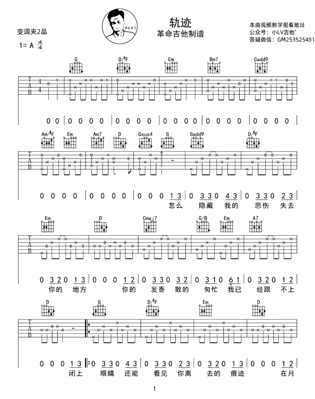 周杰伦《轨迹》吉他谱