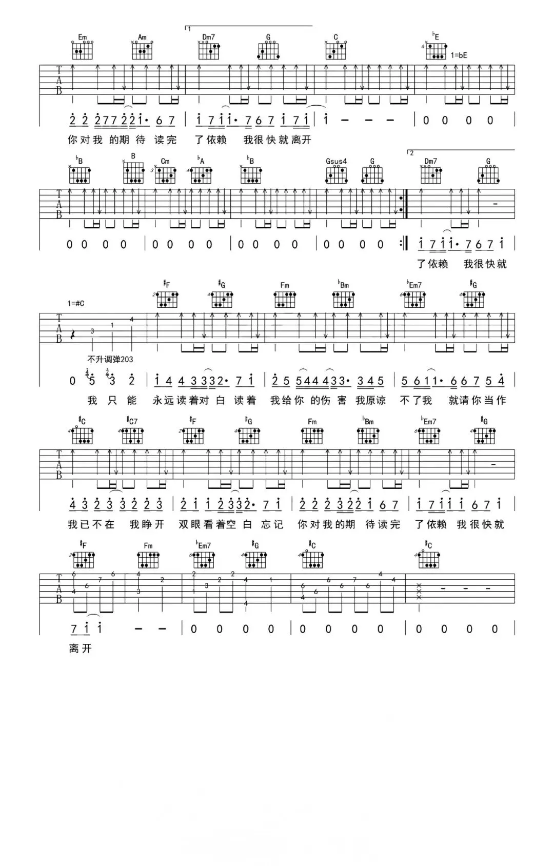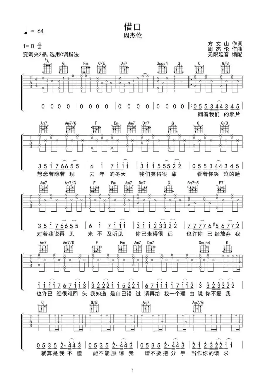 周杰伦《借口》吉他谱