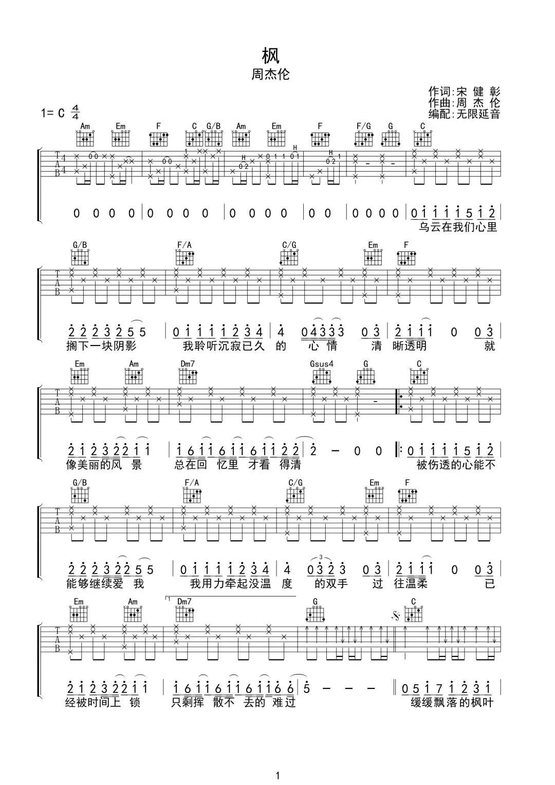 周杰伦《枫》吉他谱