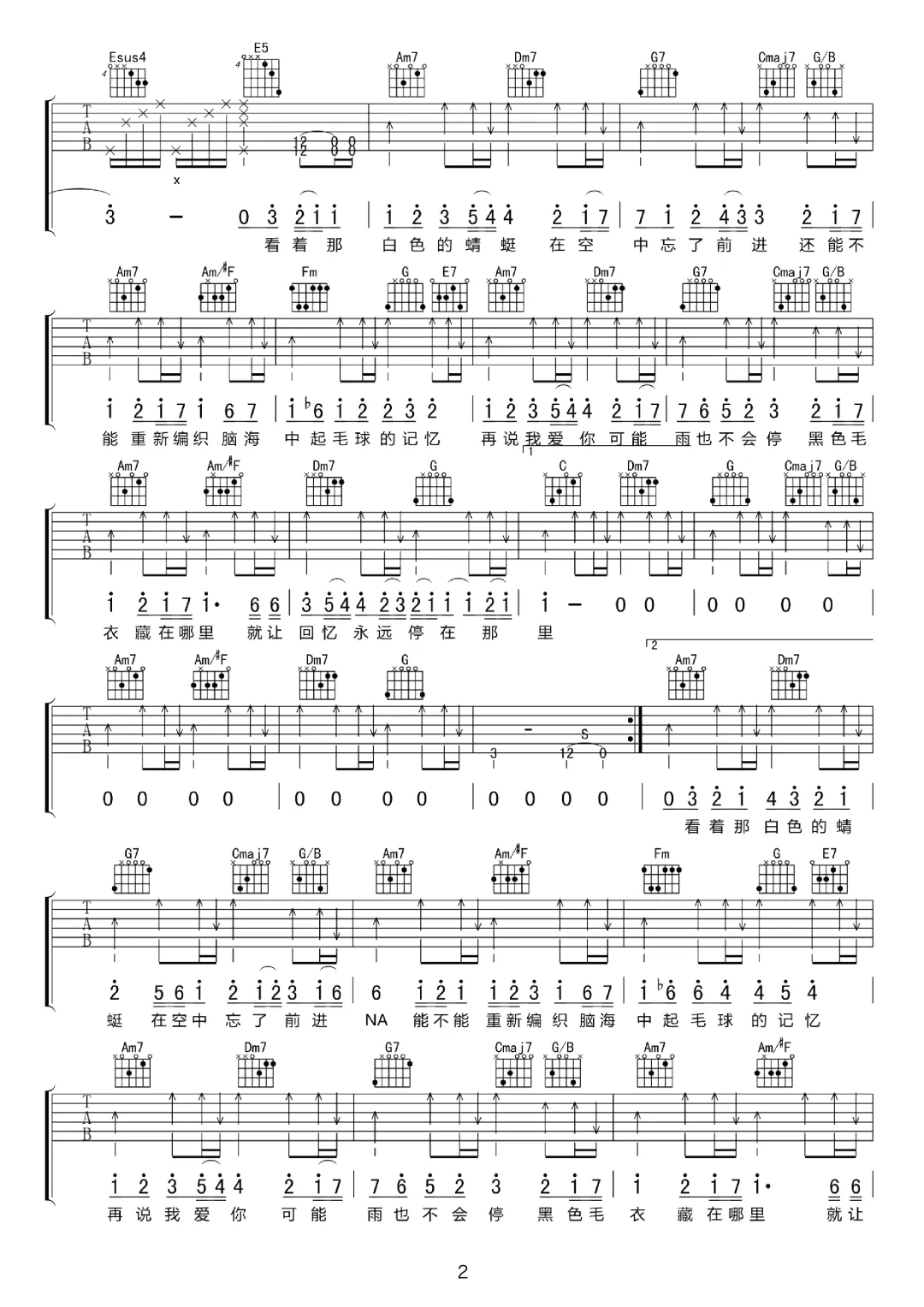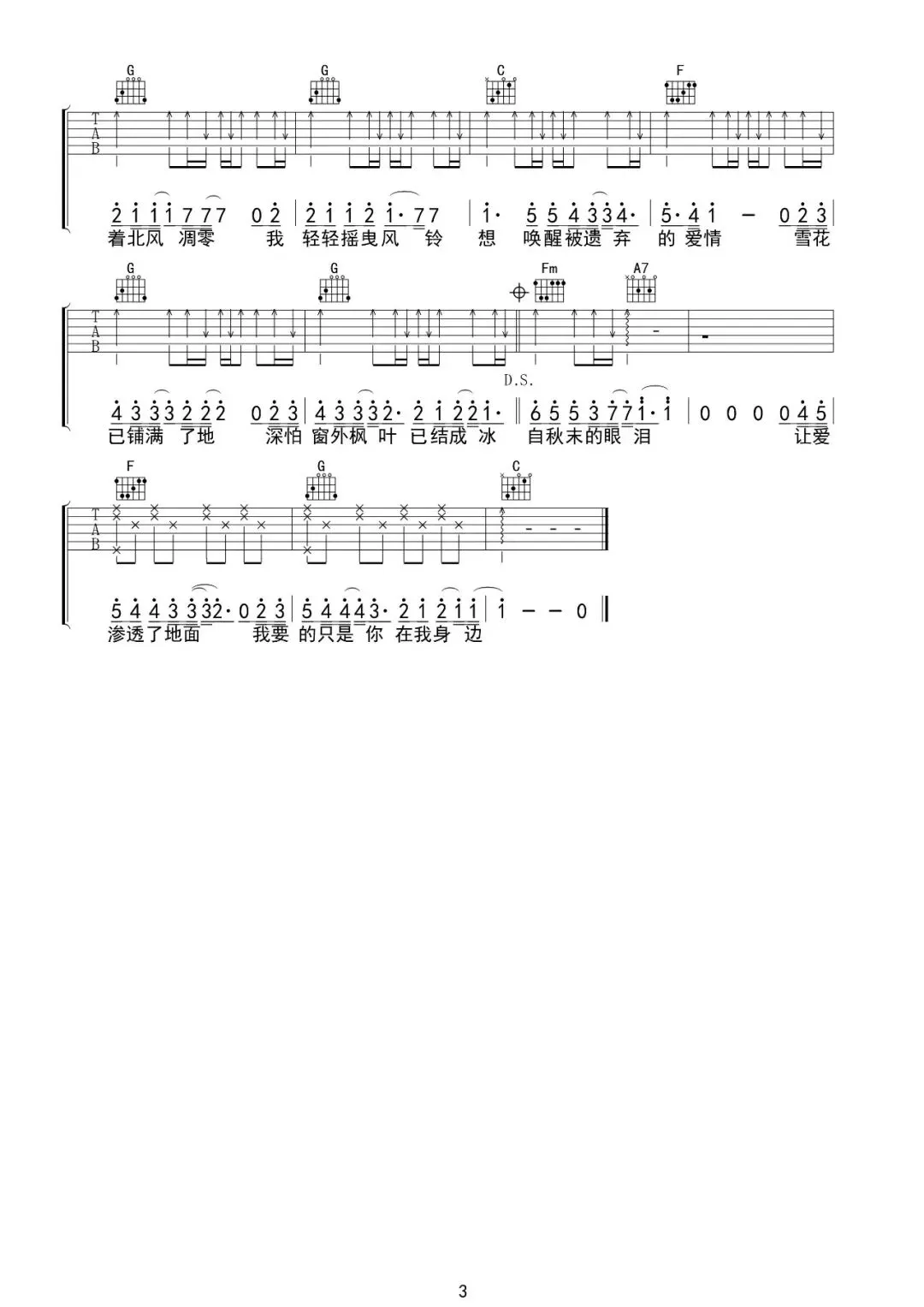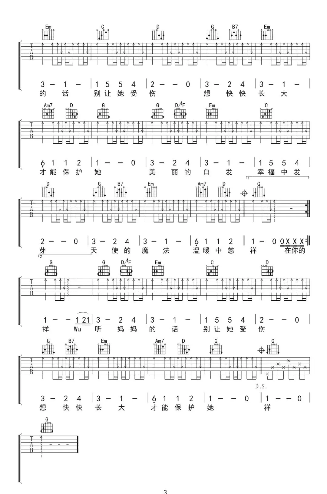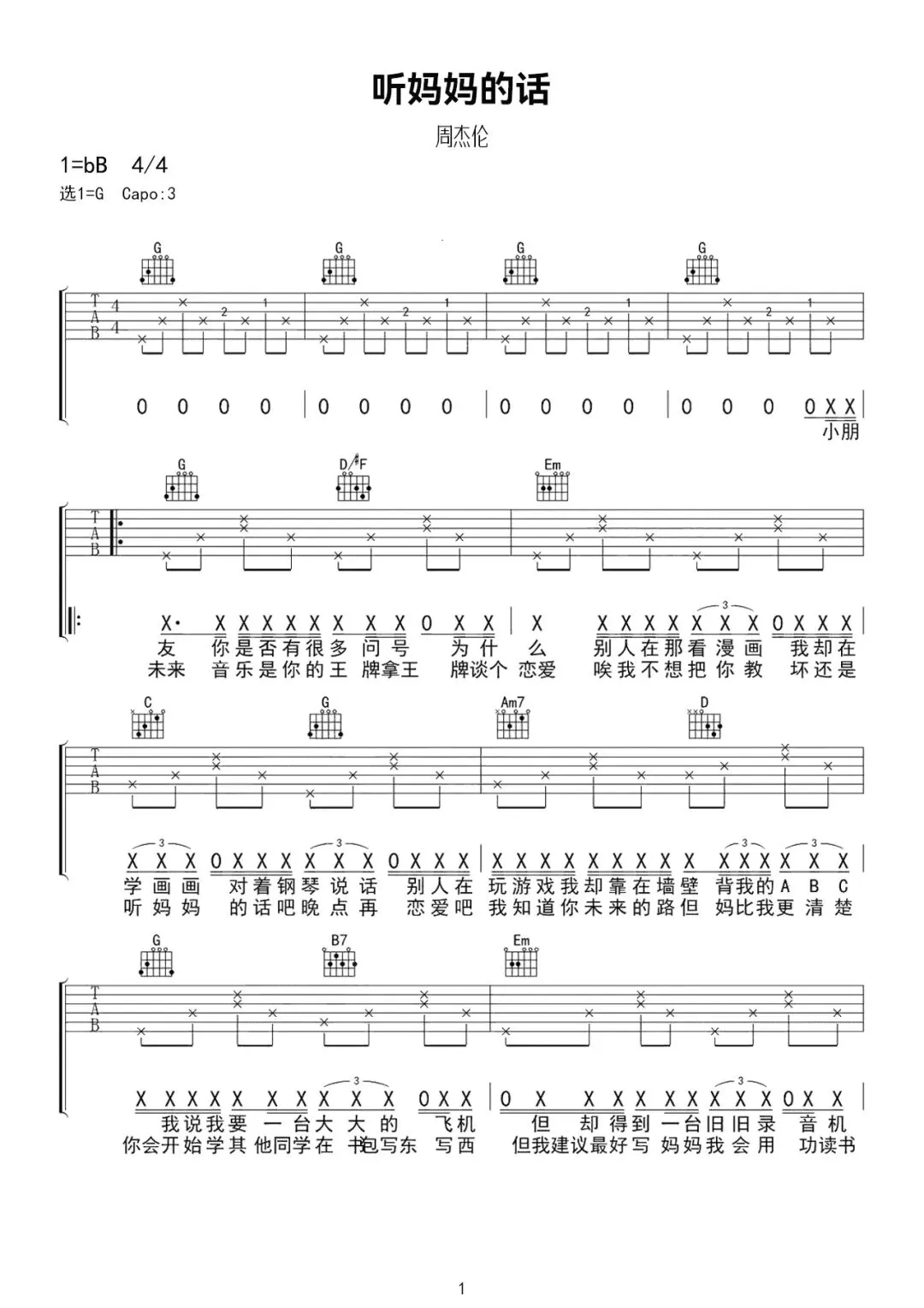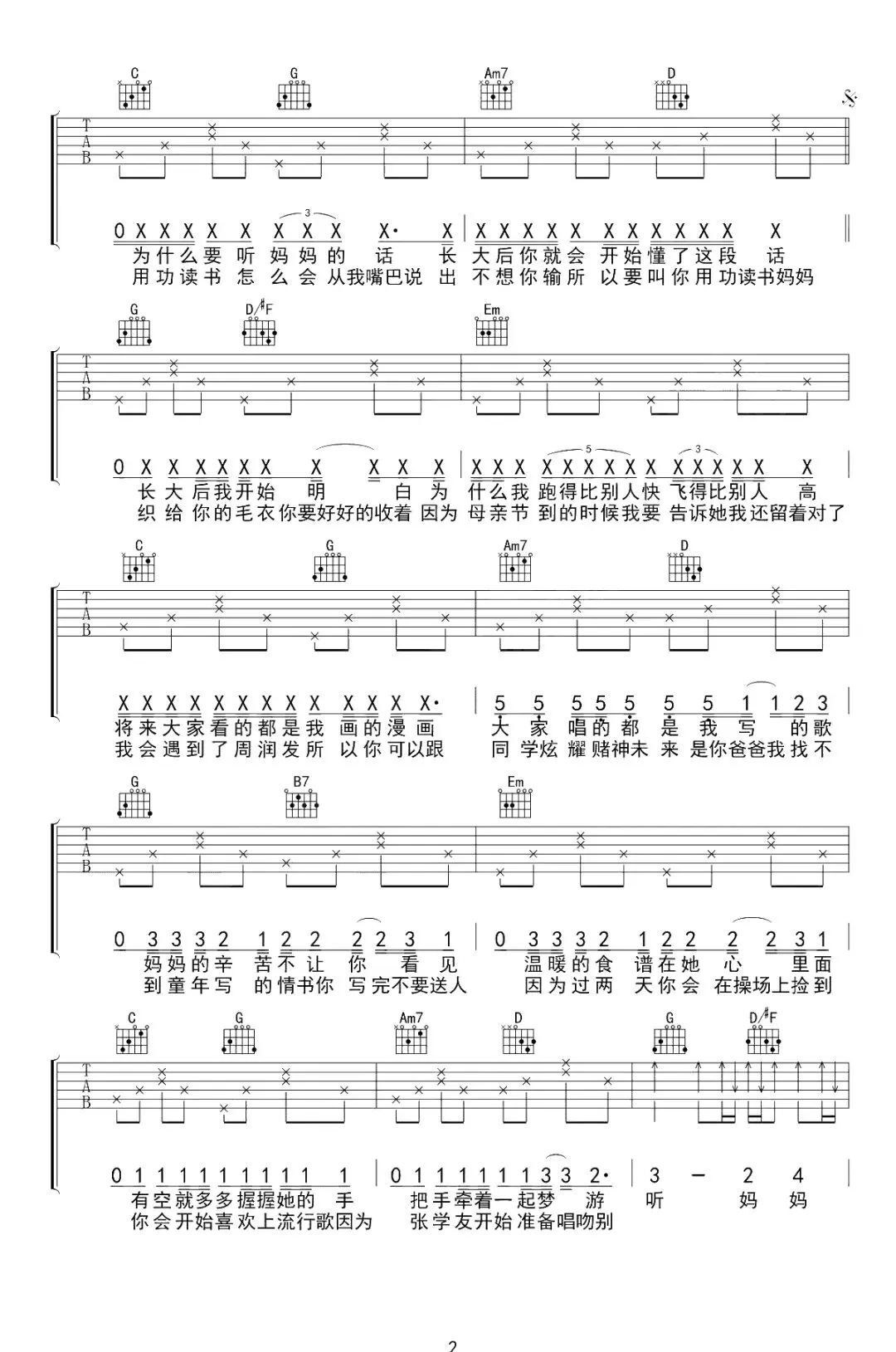 周杰伦《听妈妈的话》吉他谱