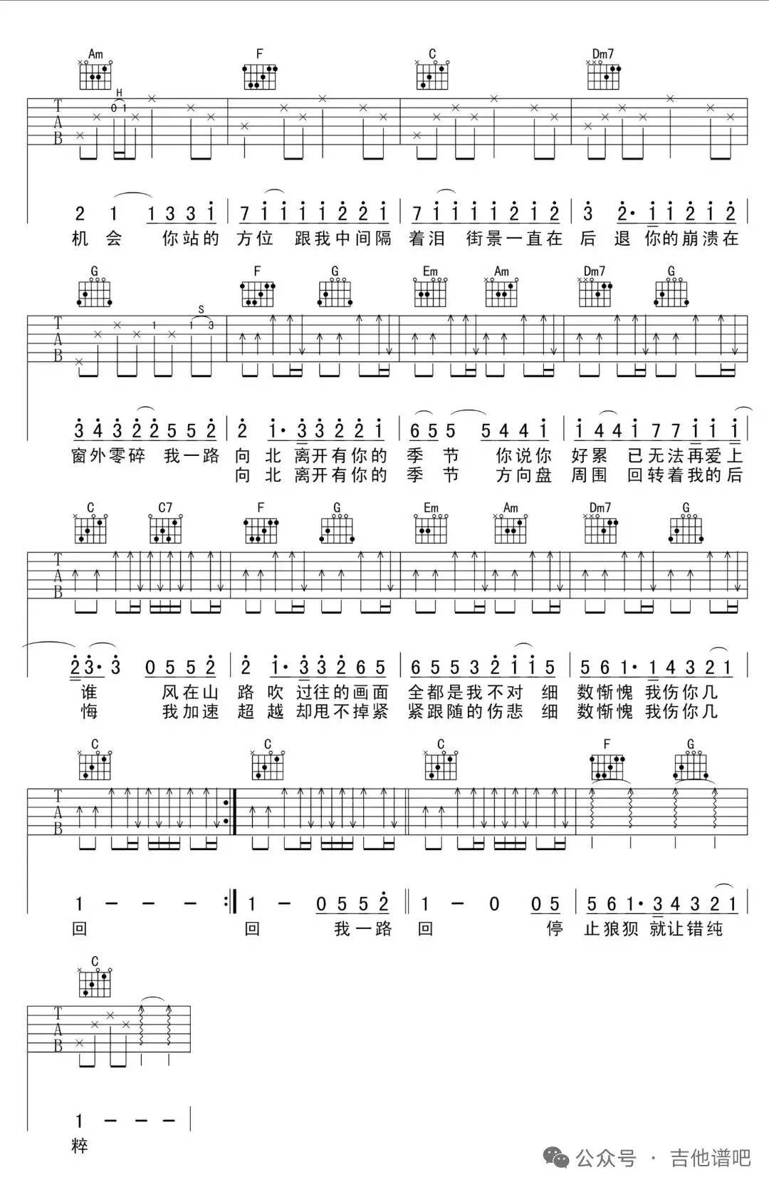 周杰伦《一路向北》吉他谱