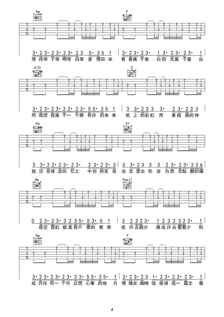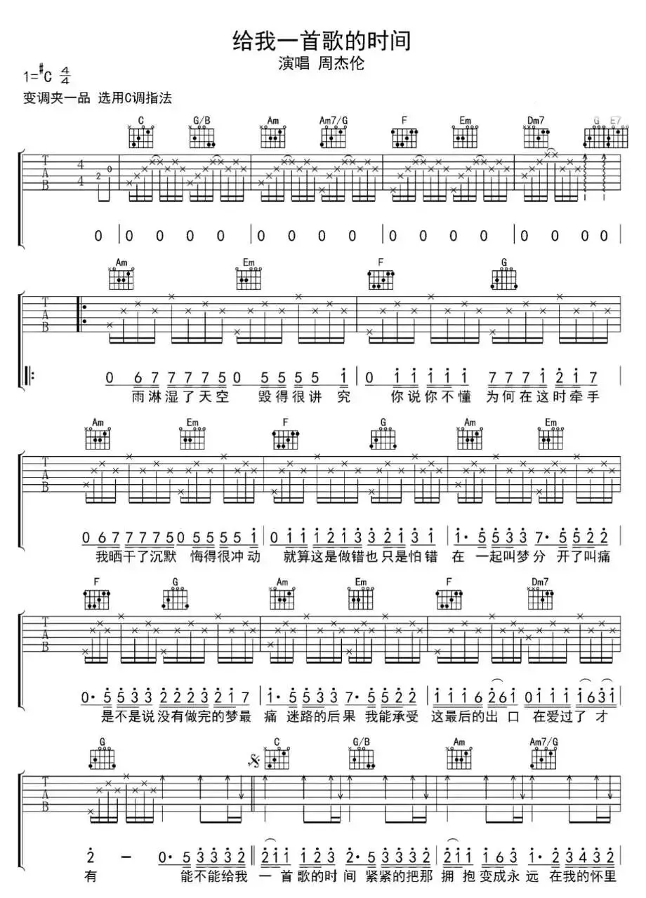 周杰伦《给我一首歌的时间》吉他谱