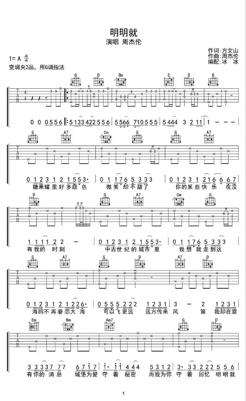 周杰伦《明明就》吉他谱