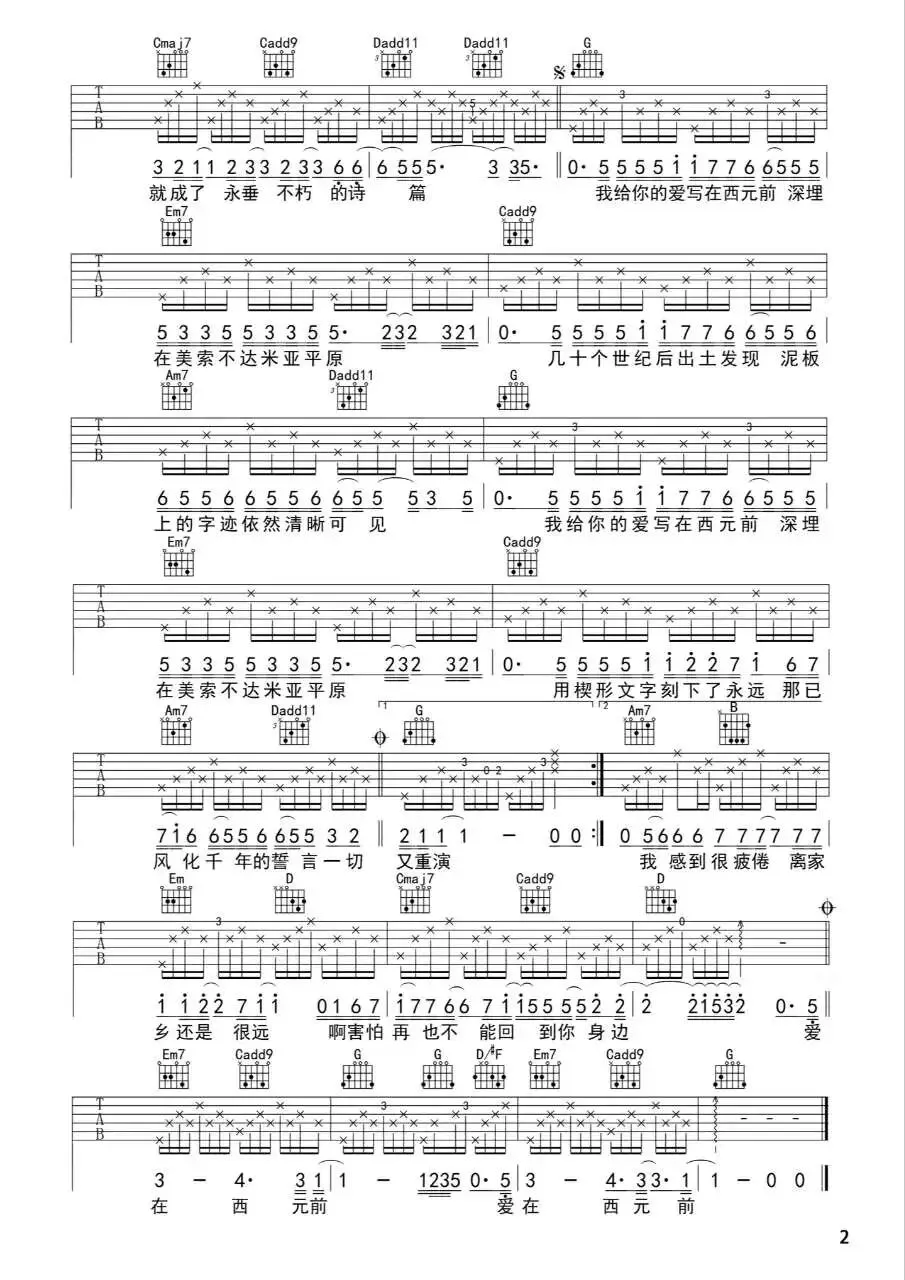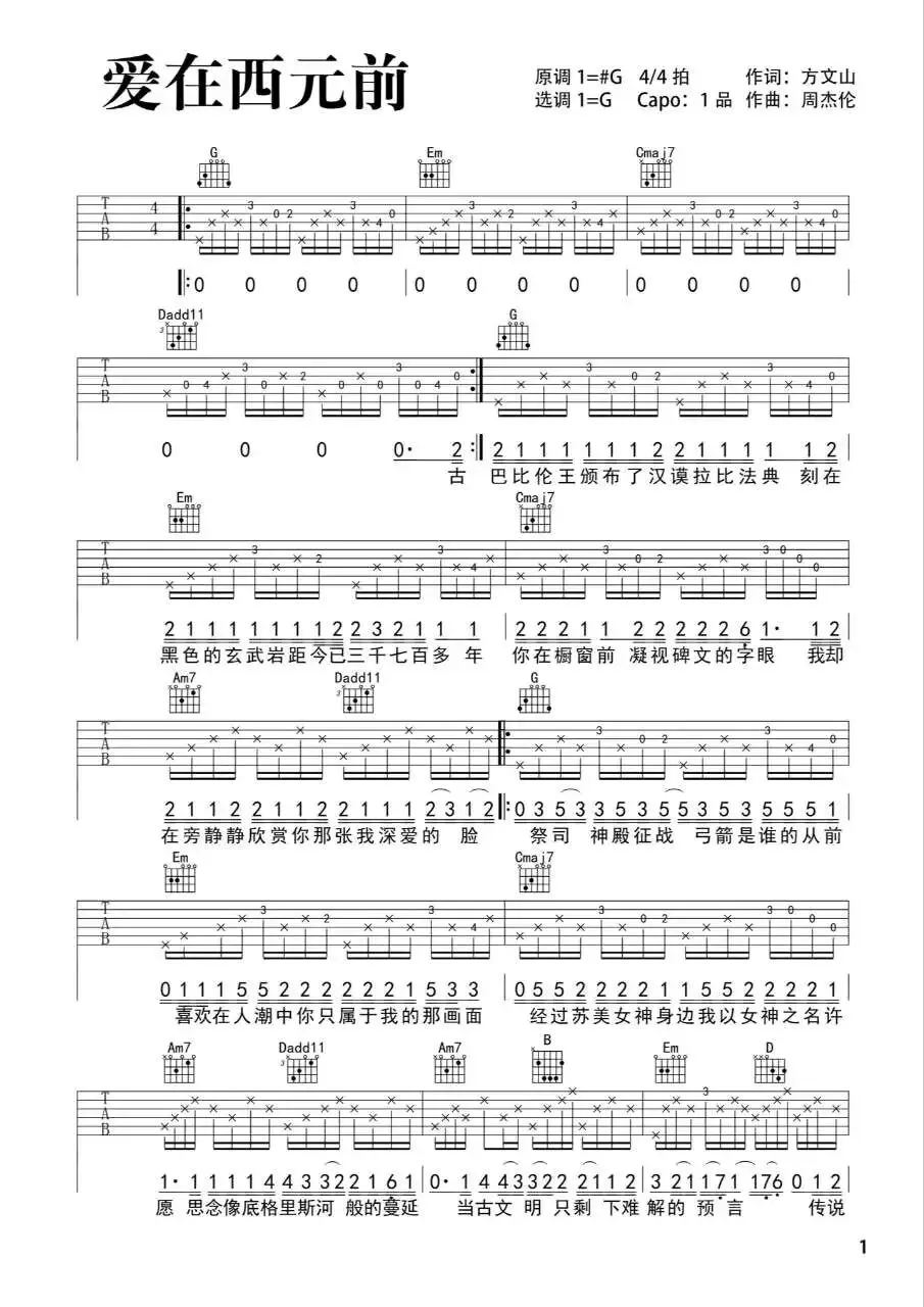 周杰伦《爱在西元前》吉他谱