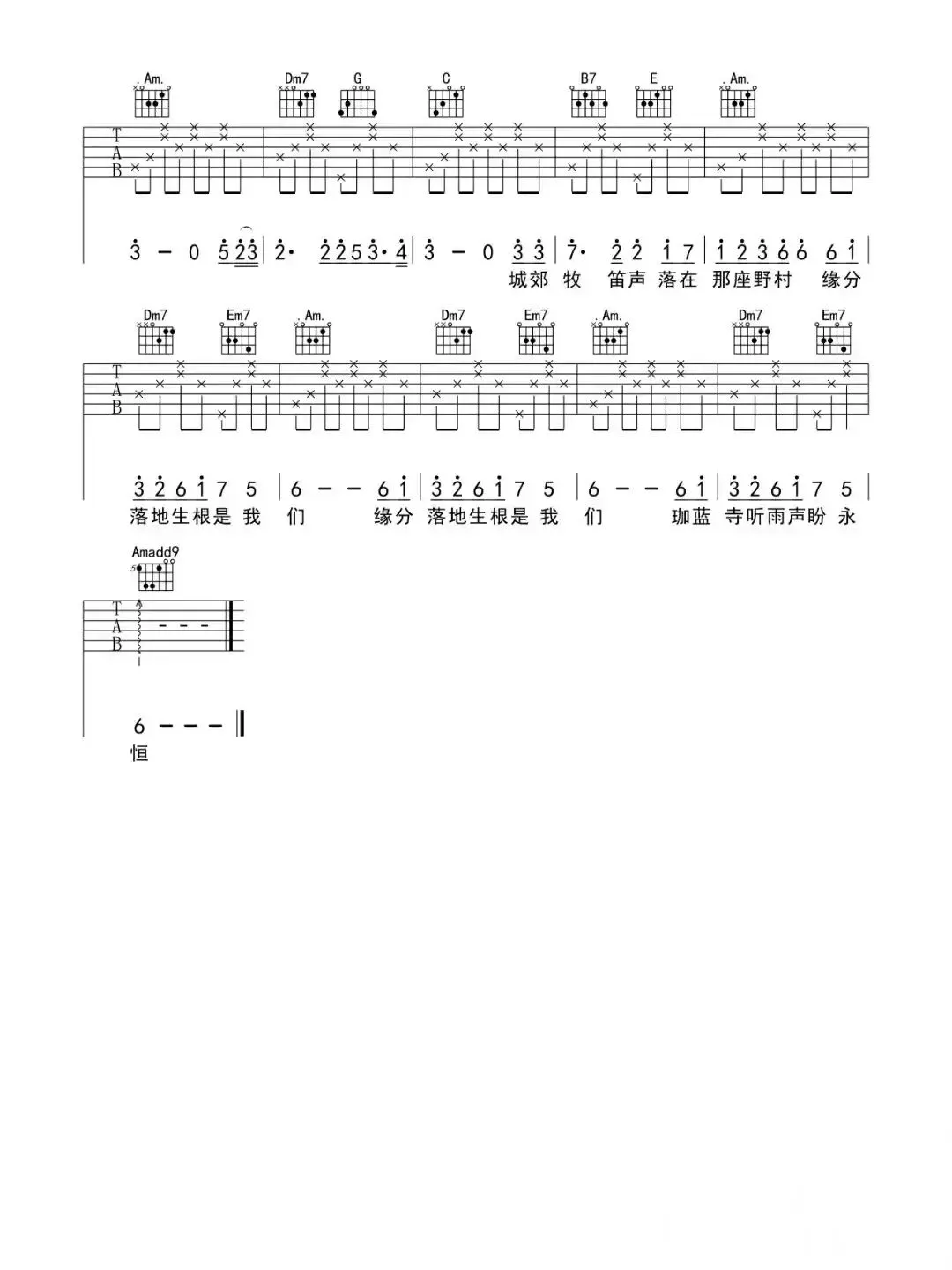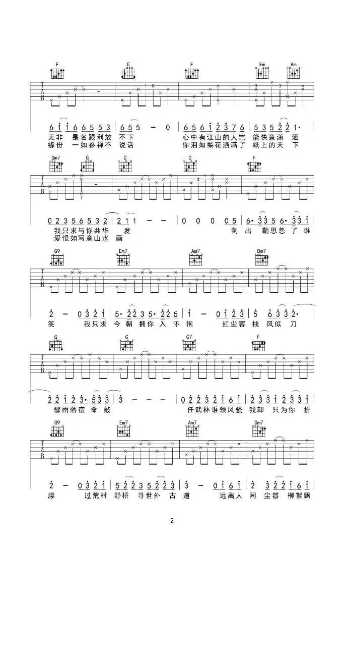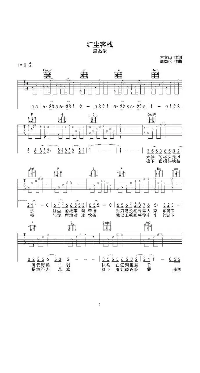 周杰伦《红尘客栈》吉他谱