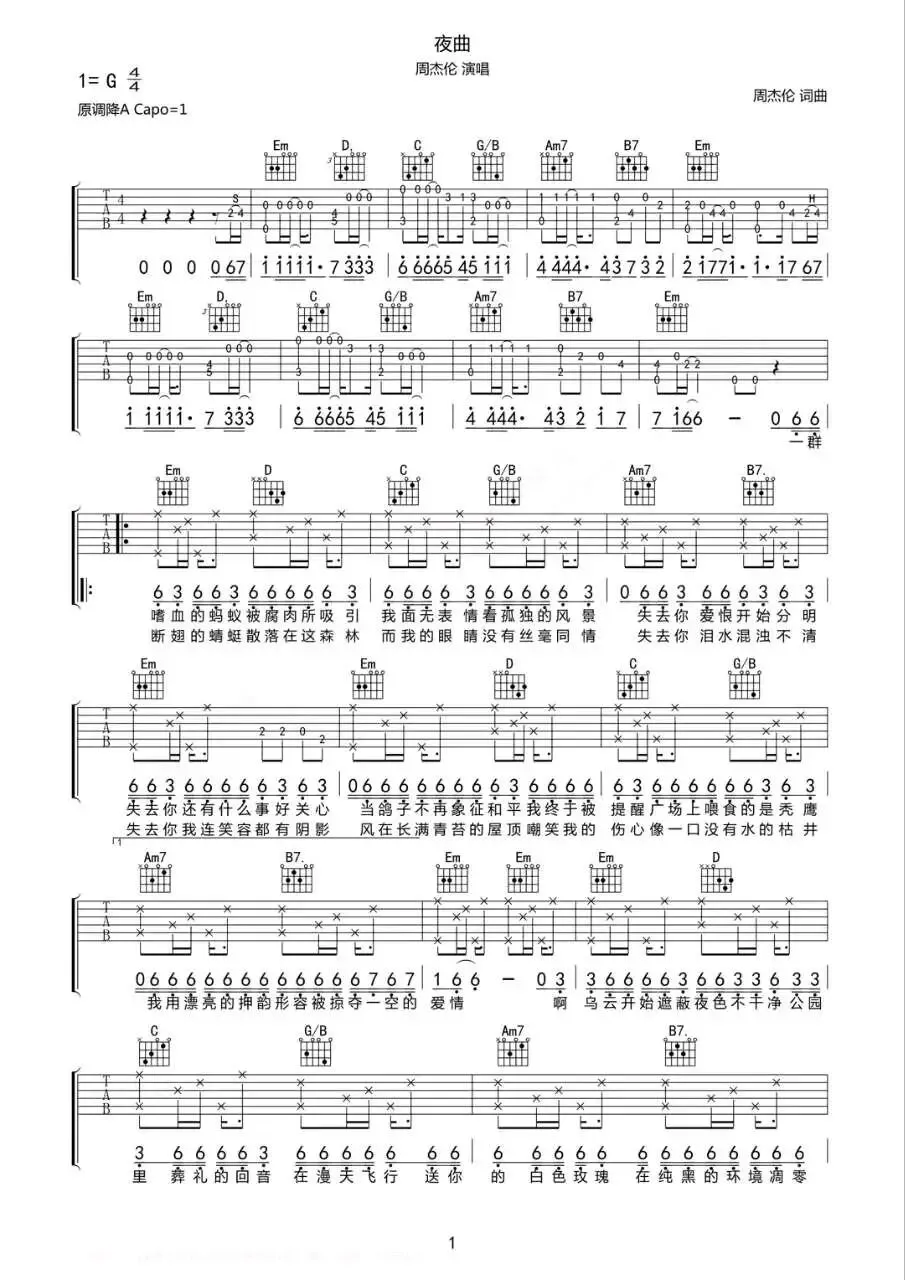 周杰伦《夜曲》吉他谱