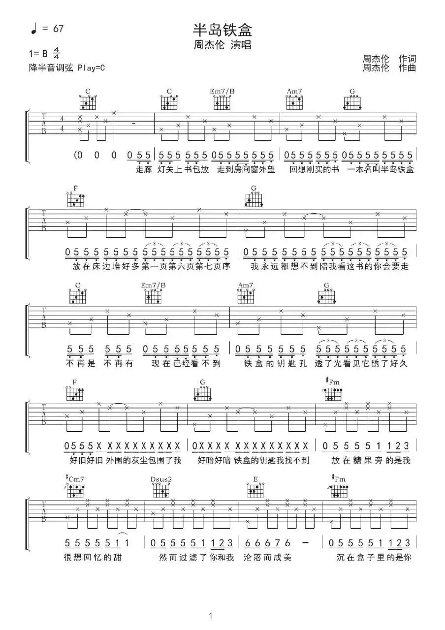 周杰伦《半岛铁盒》吉他谱