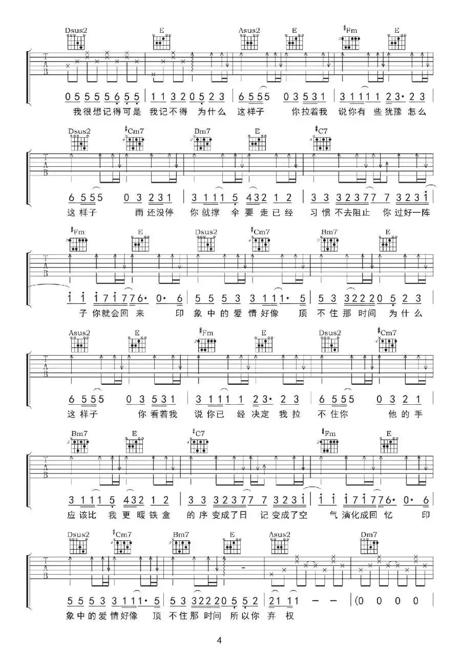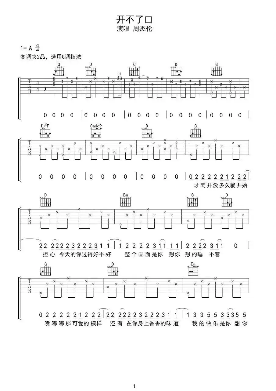 周杰伦《开不了口》吉他谱
