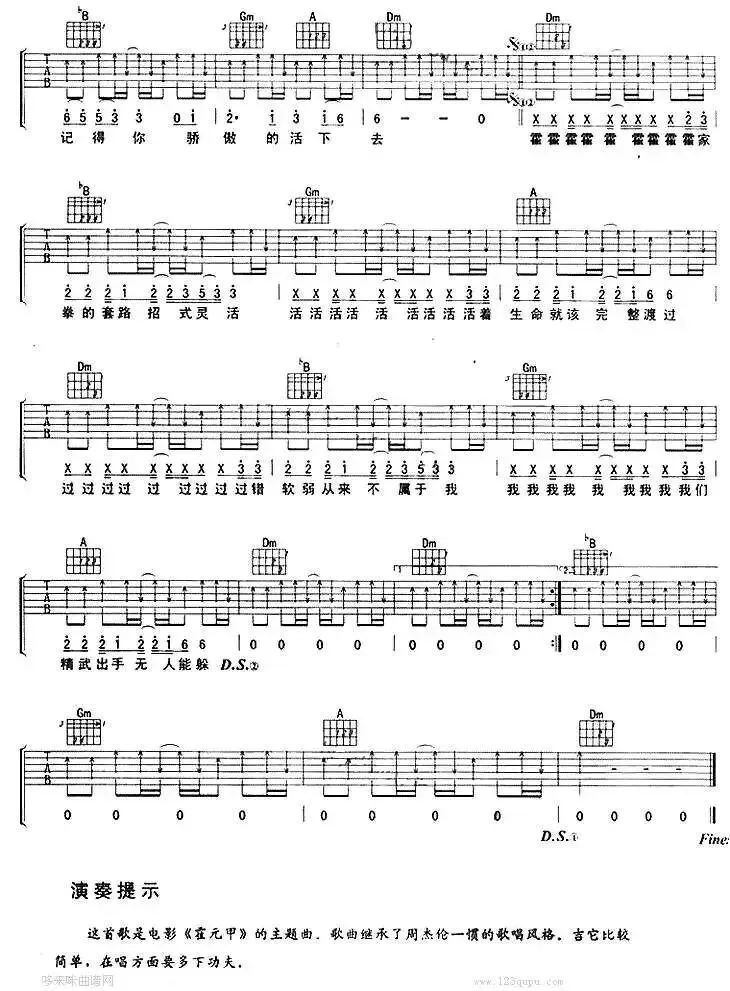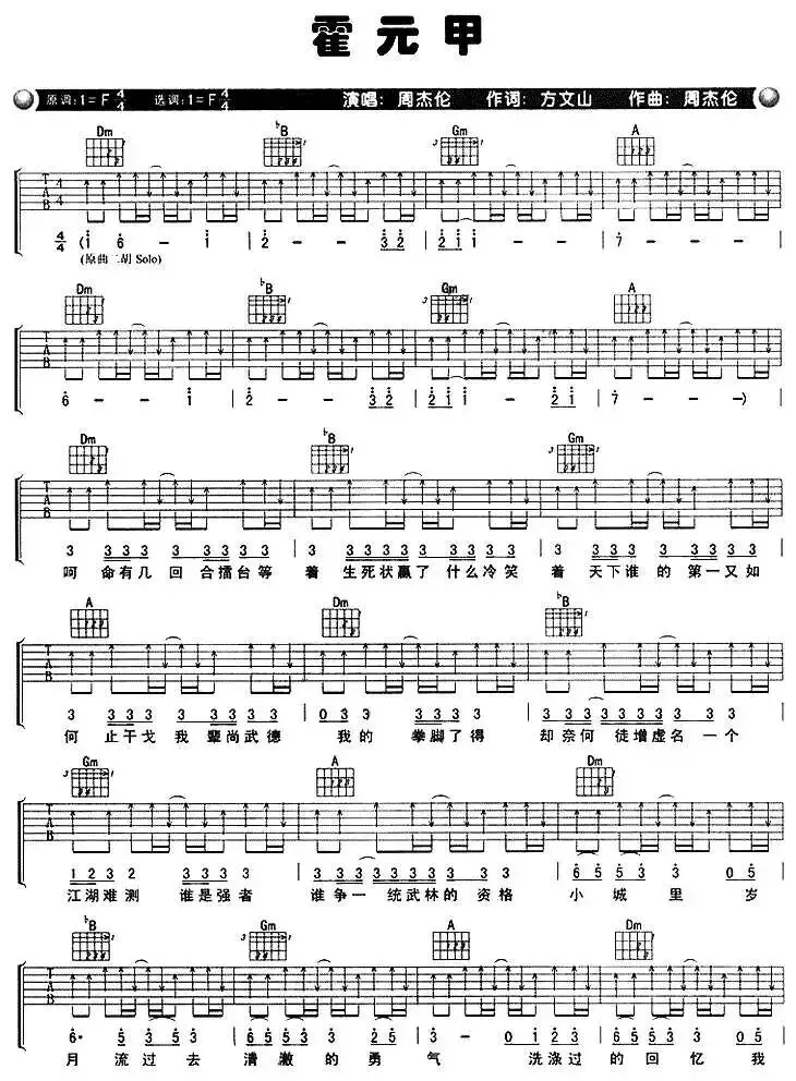 周杰伦《霍元甲》吉他谱