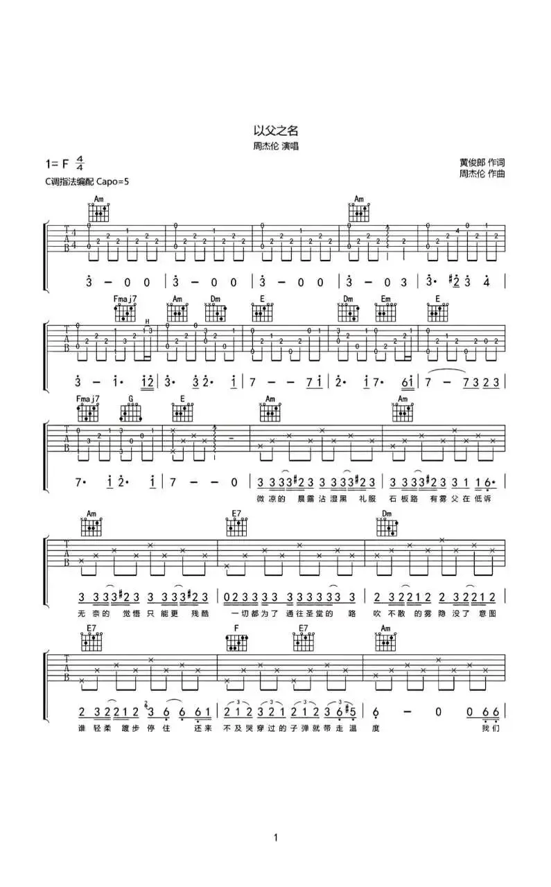周杰伦《以父之名》吉他谱