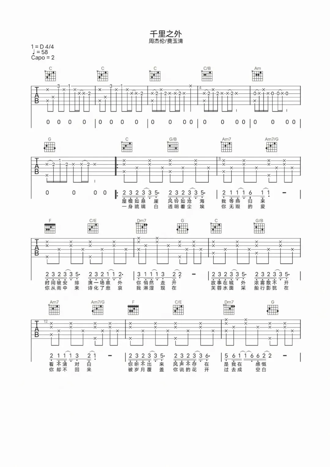 周杰伦《千里之外》吉他谱