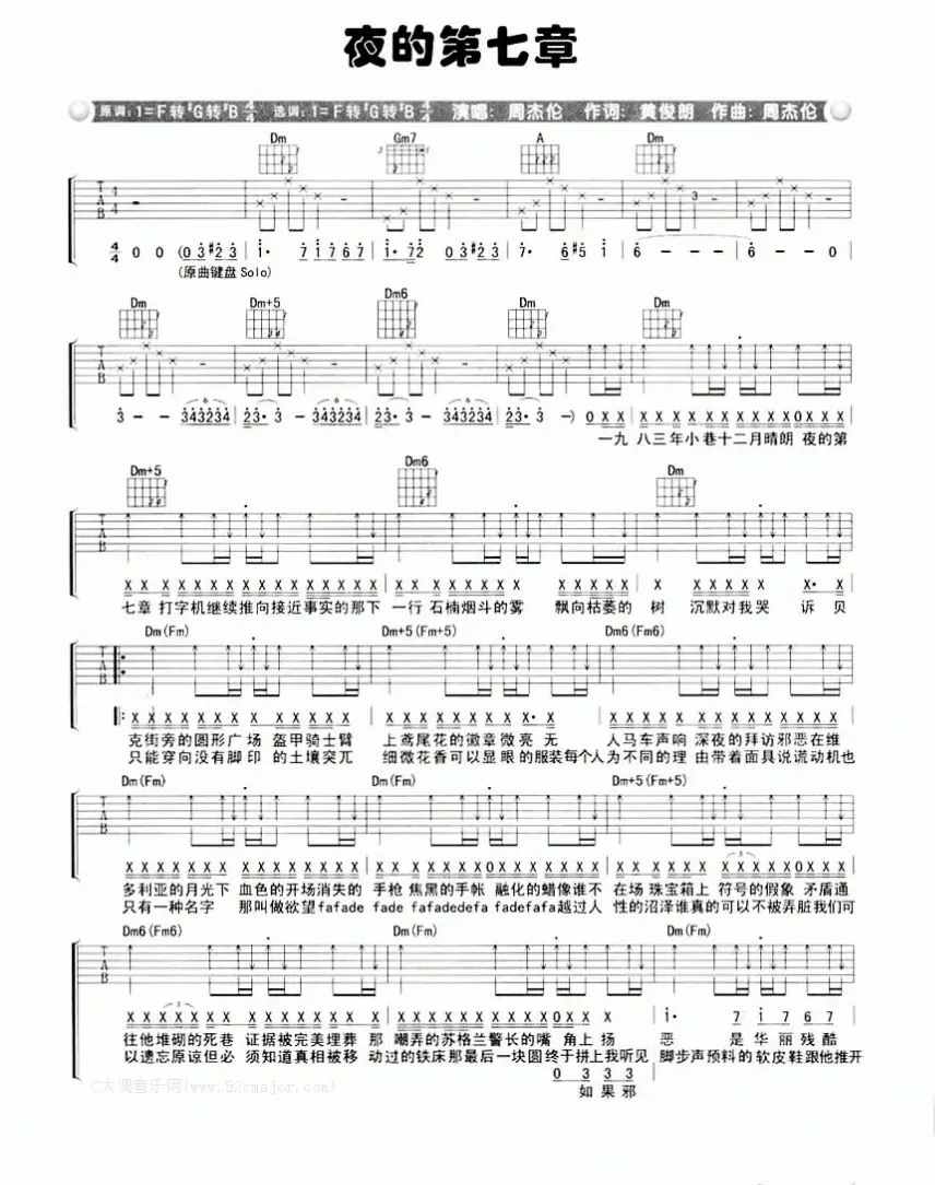 周杰伦《夜的第七章》吉他谱