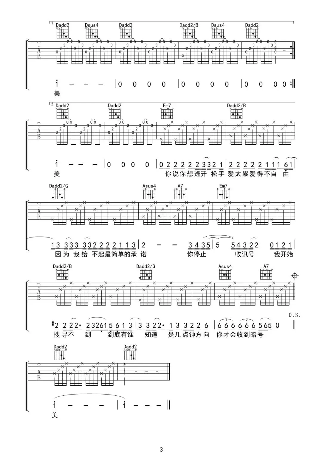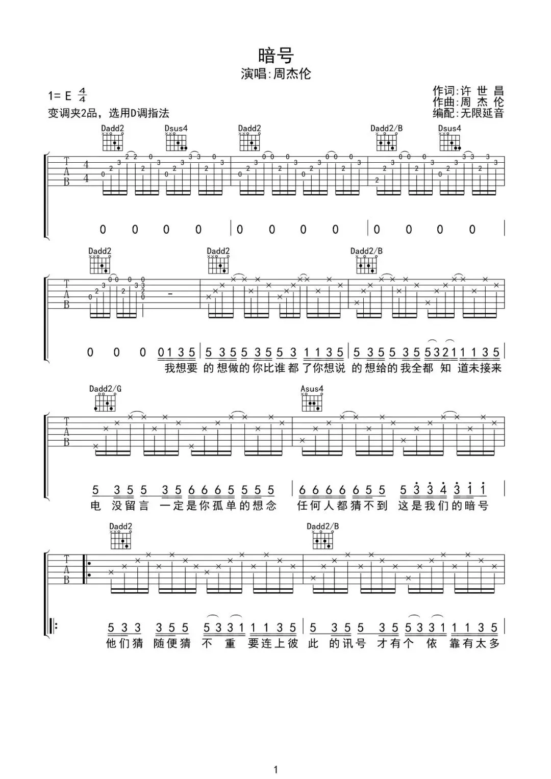 周杰伦《暗号》吉他谱