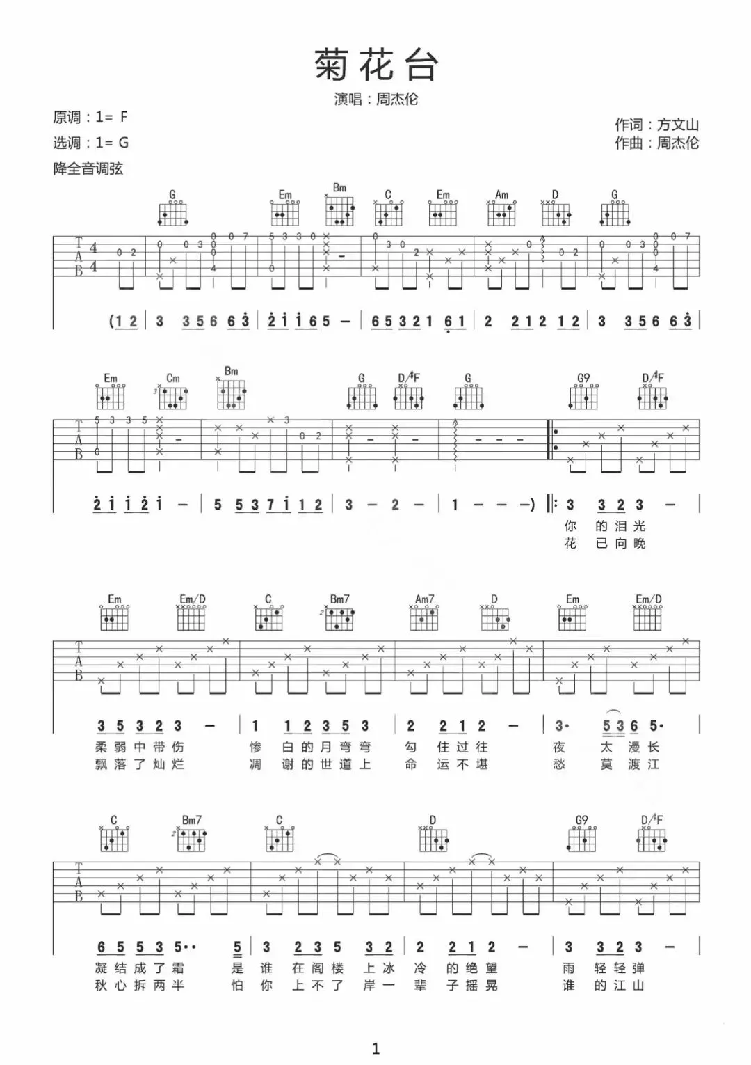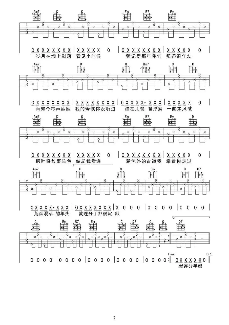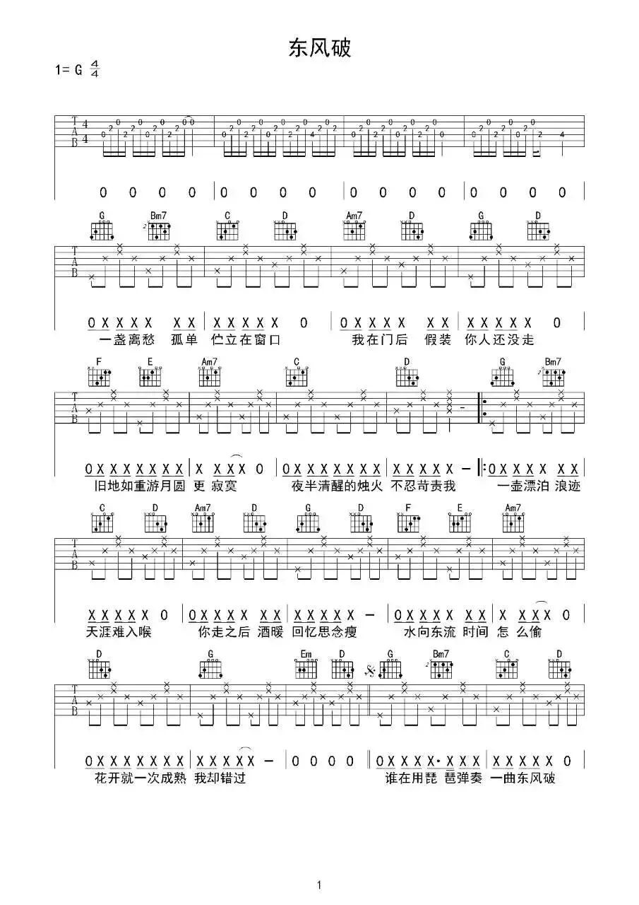 周杰伦《东风破》吉他谱