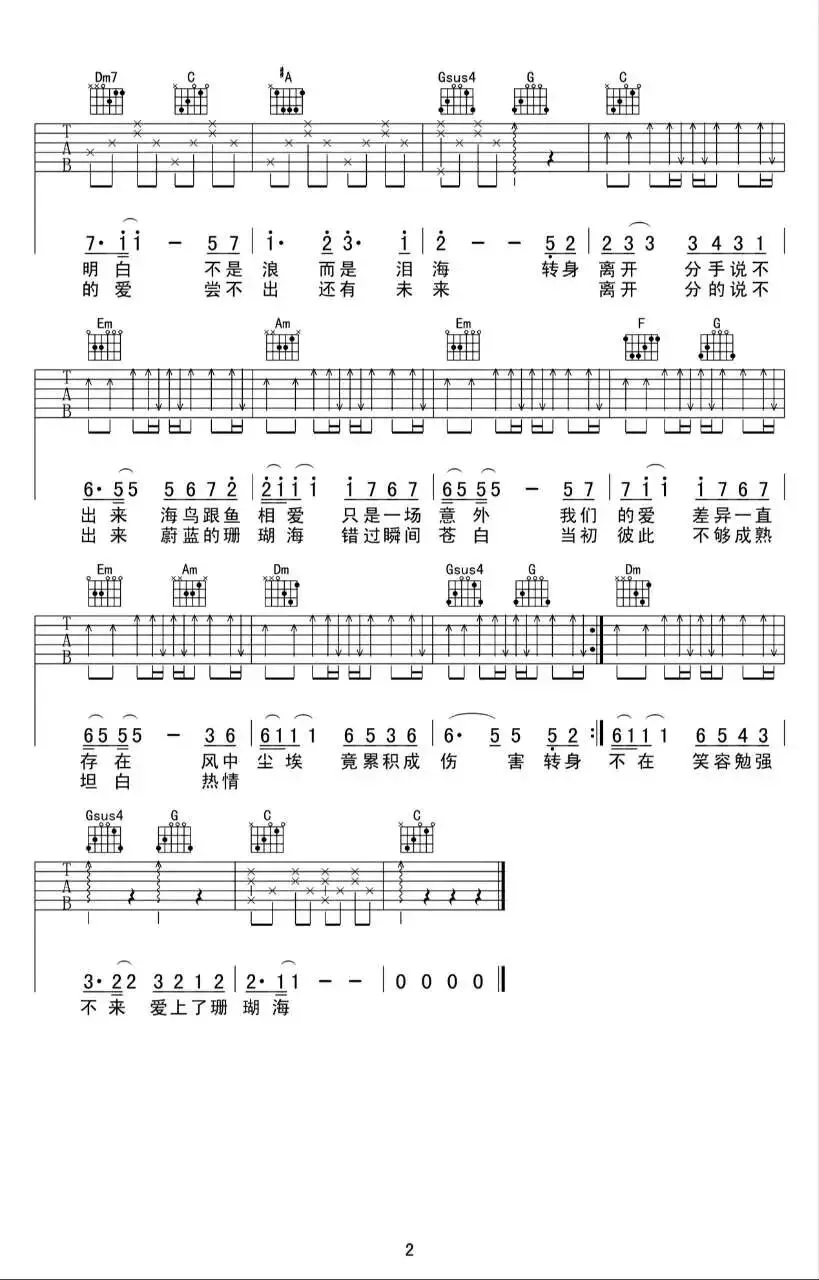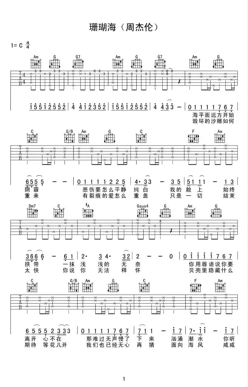 周杰伦《珊瑚海》吉他谱