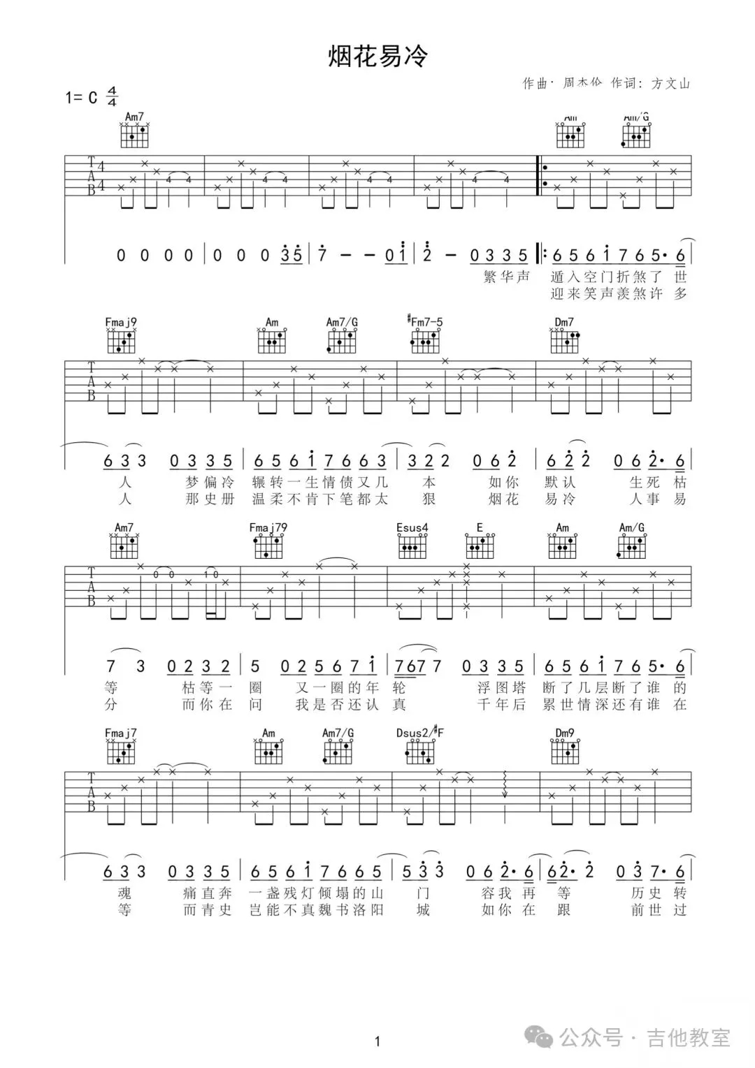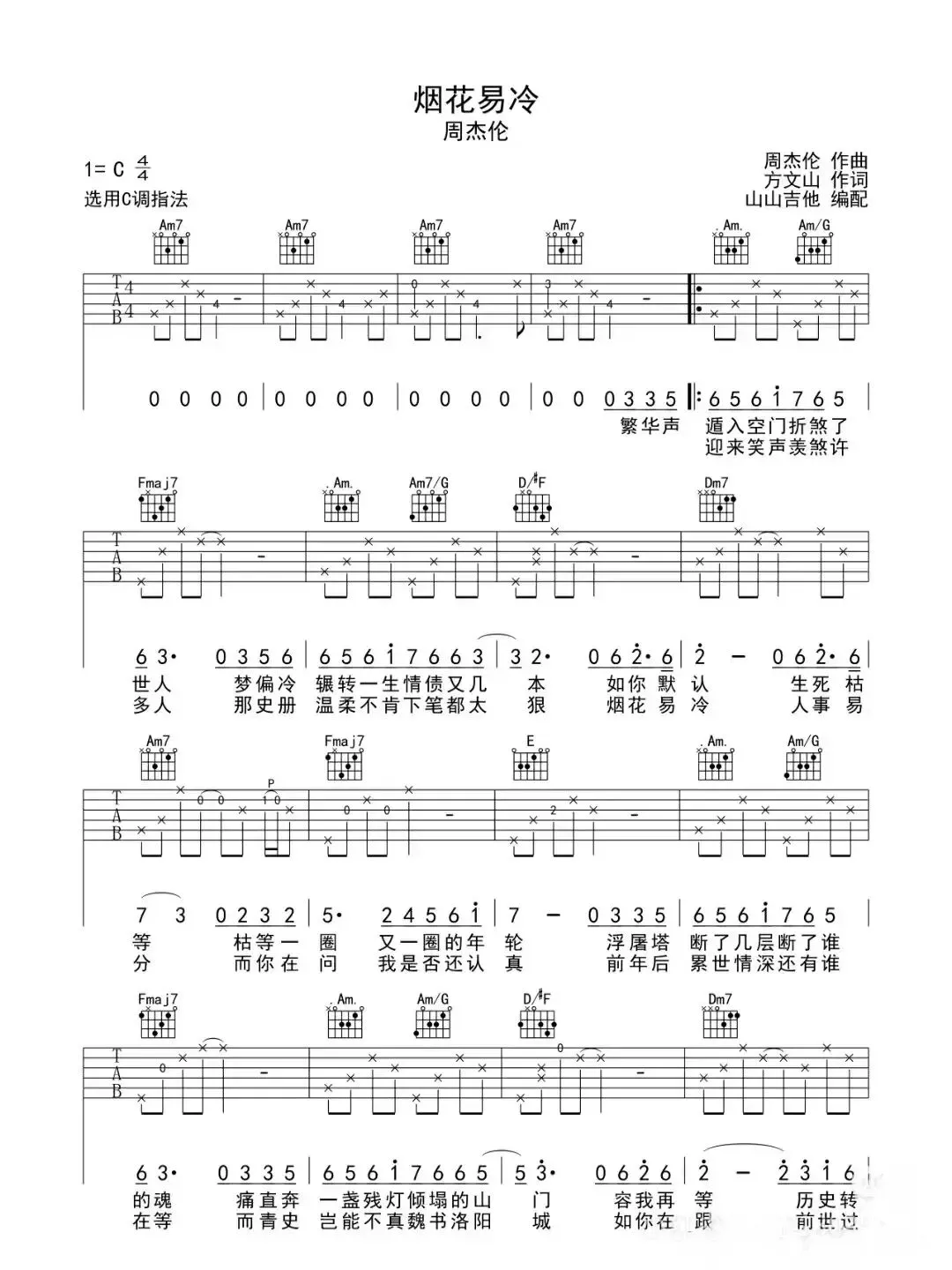 周杰伦《烟花易冷》吉他谱