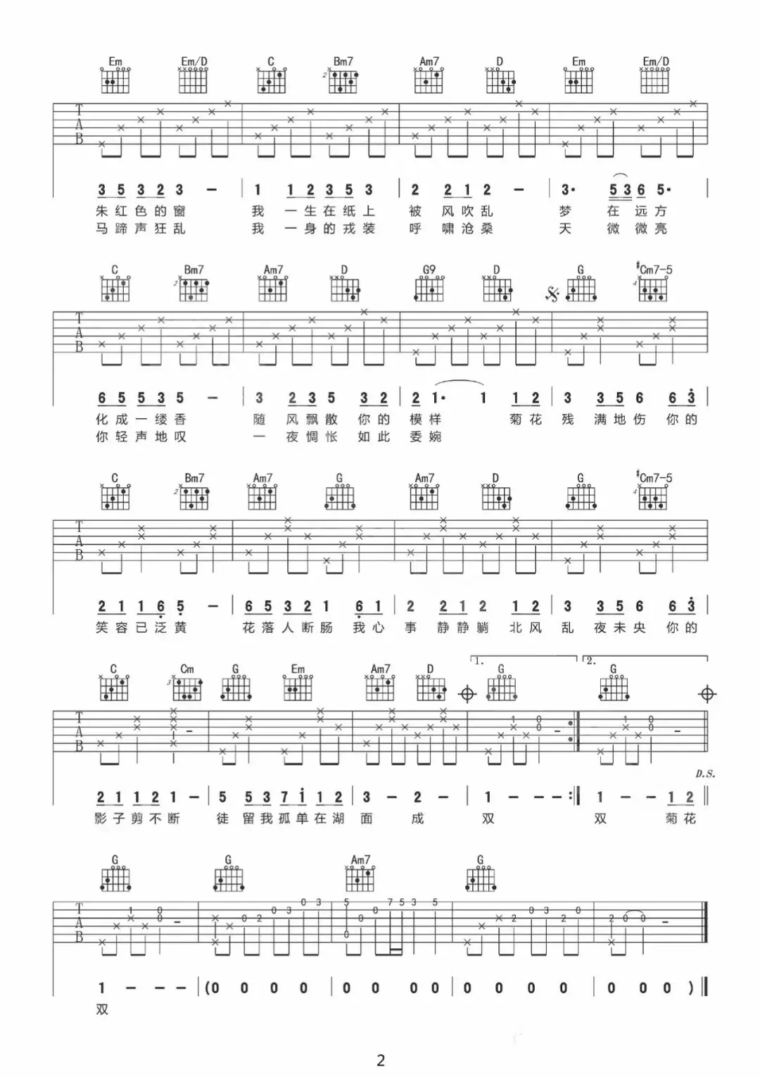 周杰伦《菊花台》吉他谱