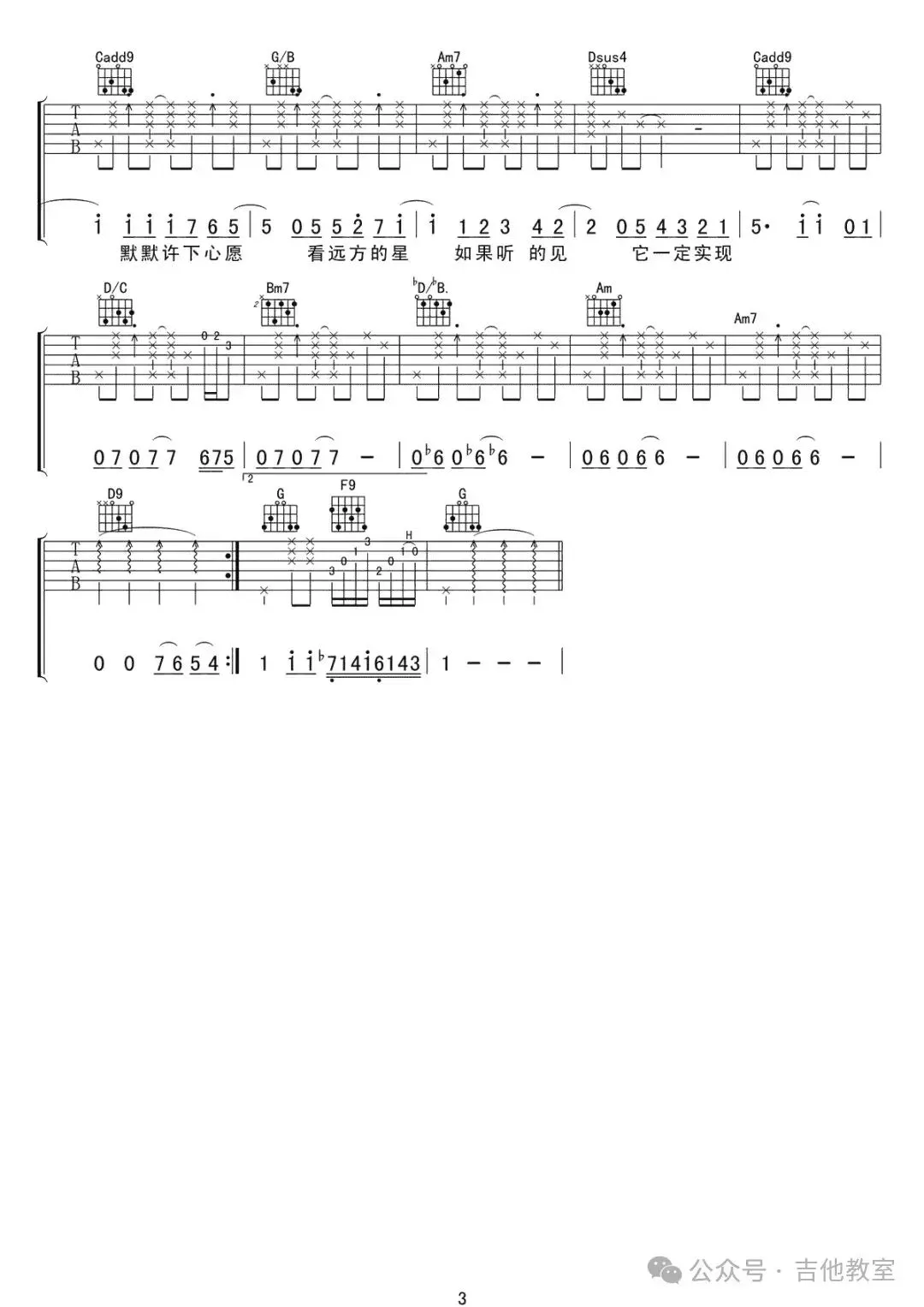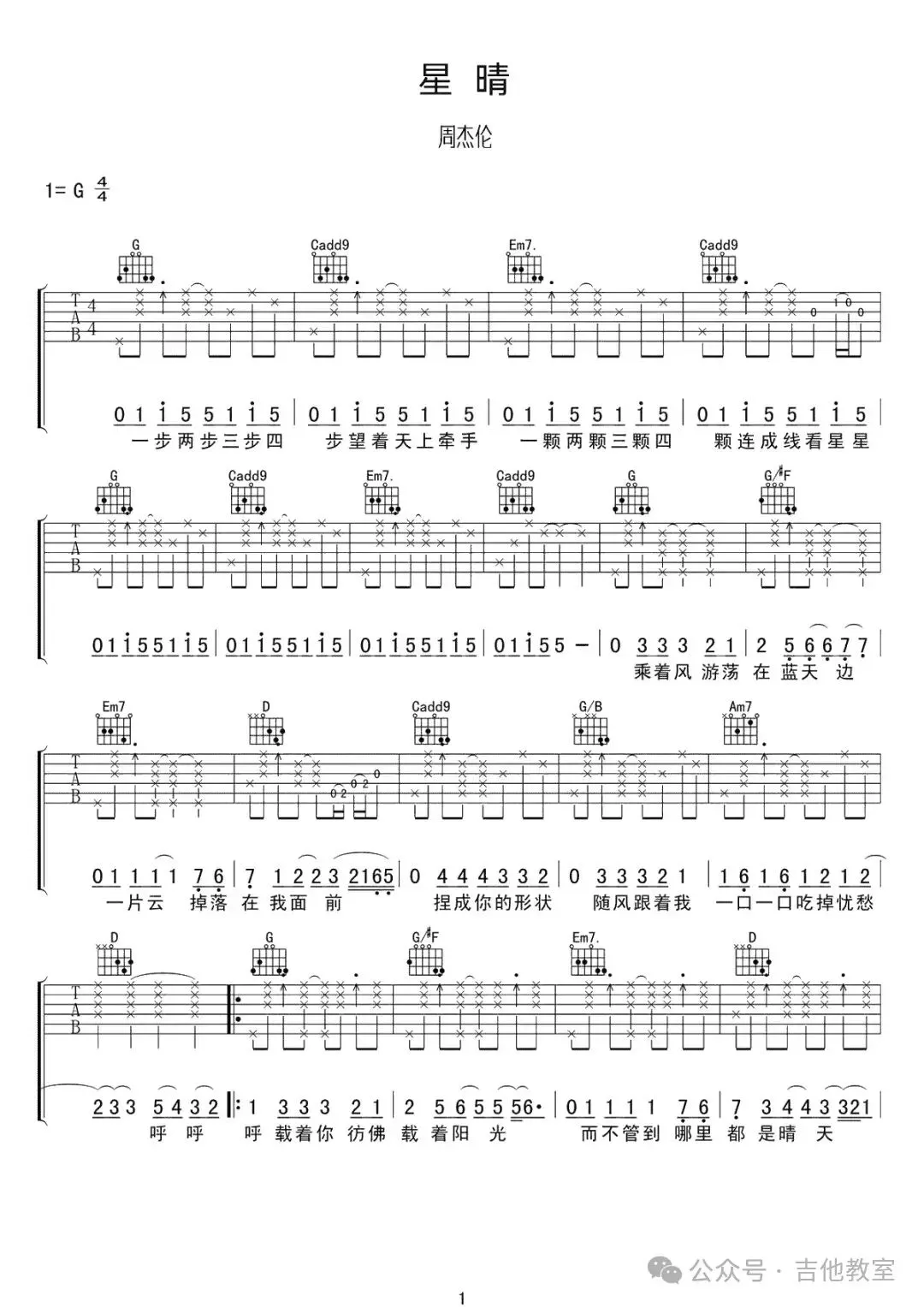 周杰伦《星晴》吉他谱