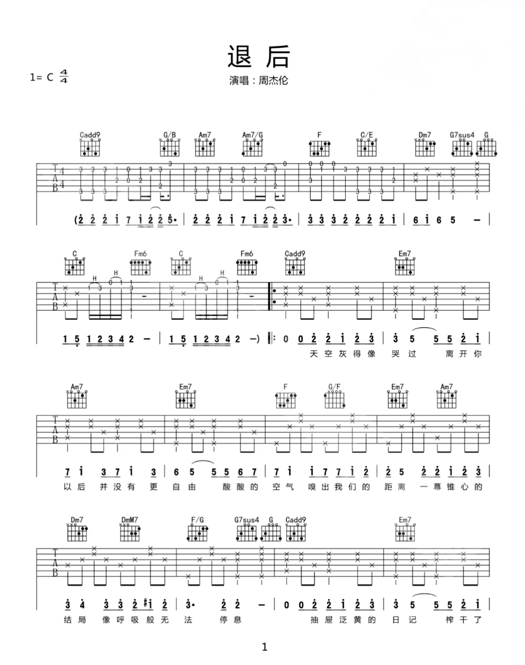周杰伦《退后》吉他谱