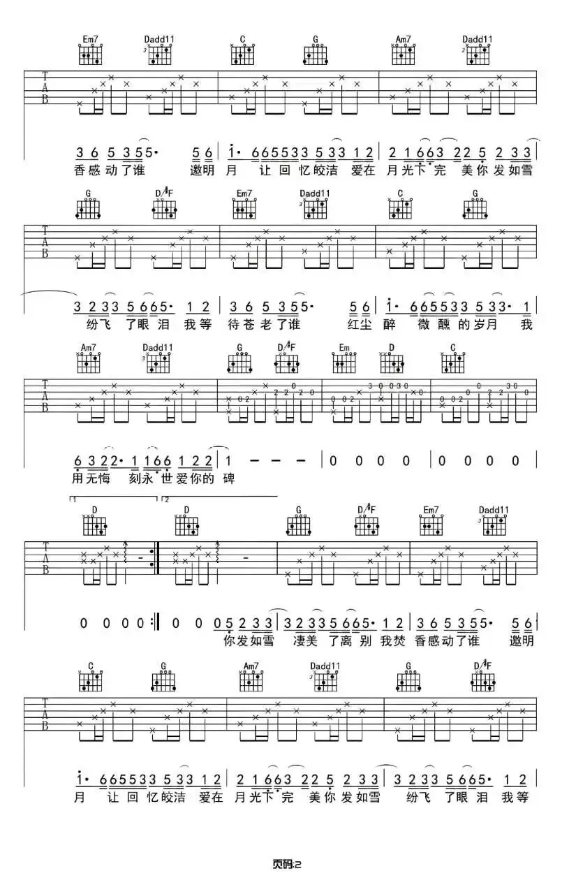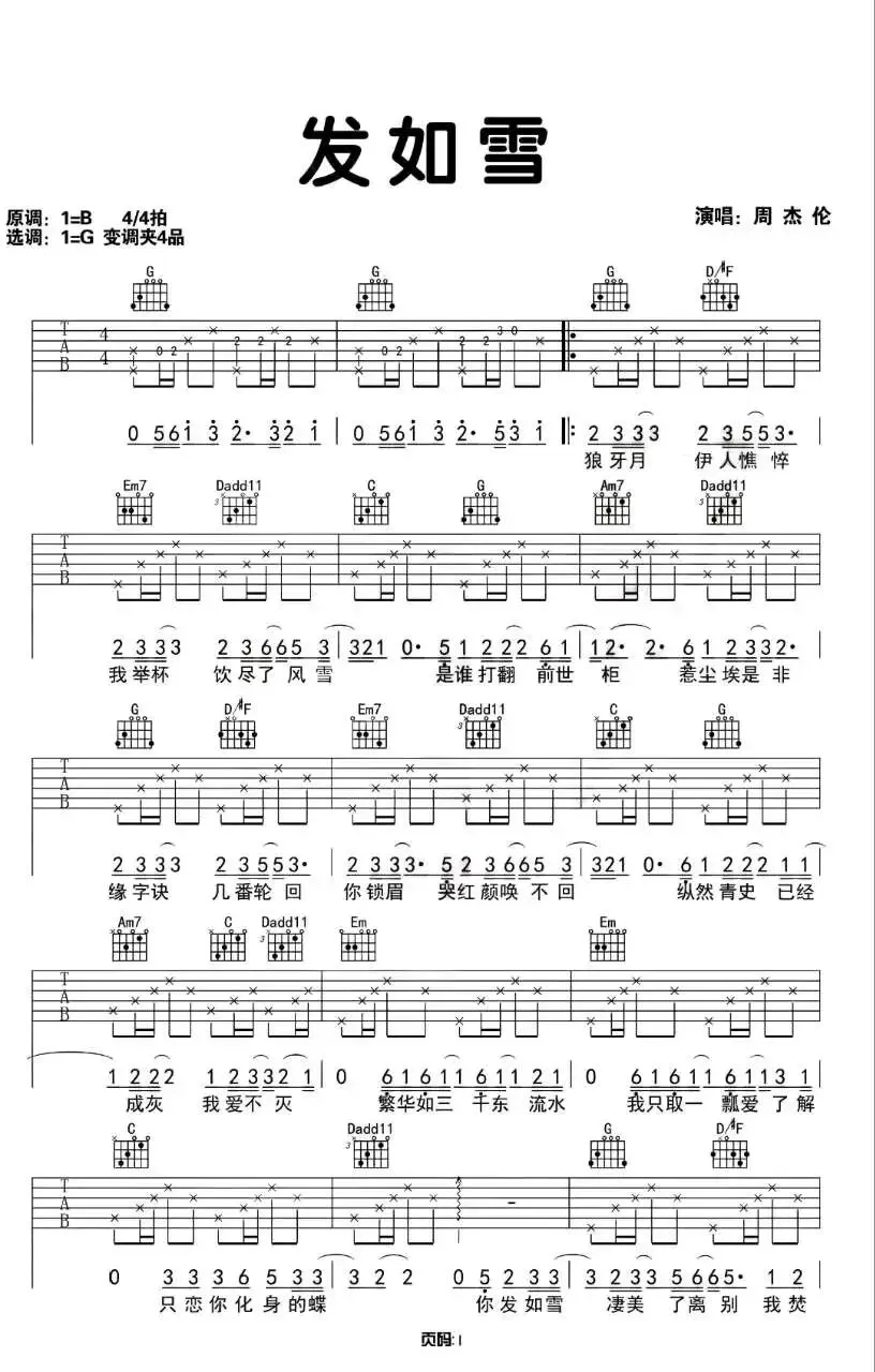 周杰伦《发如雪》吉他谱