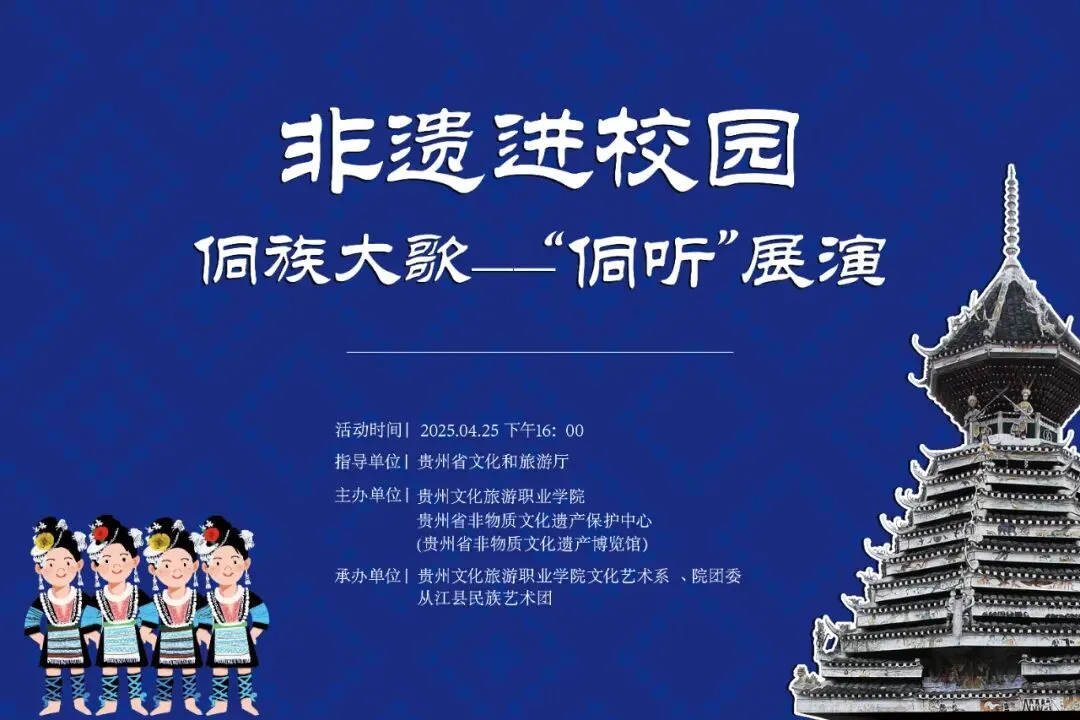 4月25日,侗族大歌一“侗听”展演进入贵州文化旅游职业学院,届时线上将同步直播,欢迎围观。