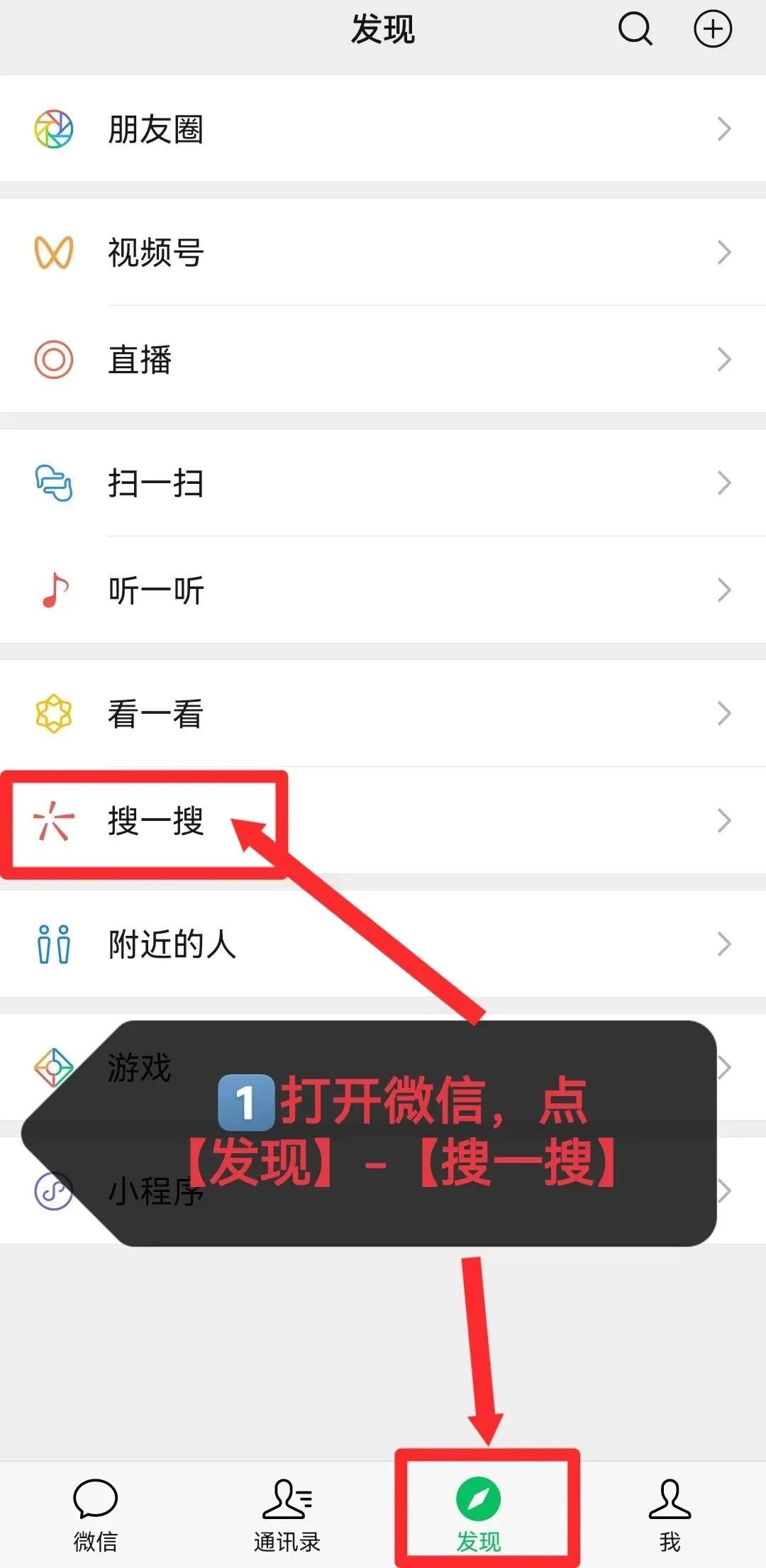 步骤1:打开微信【发现】-【搜一搜】🔍,输入想听的戏剧/音乐