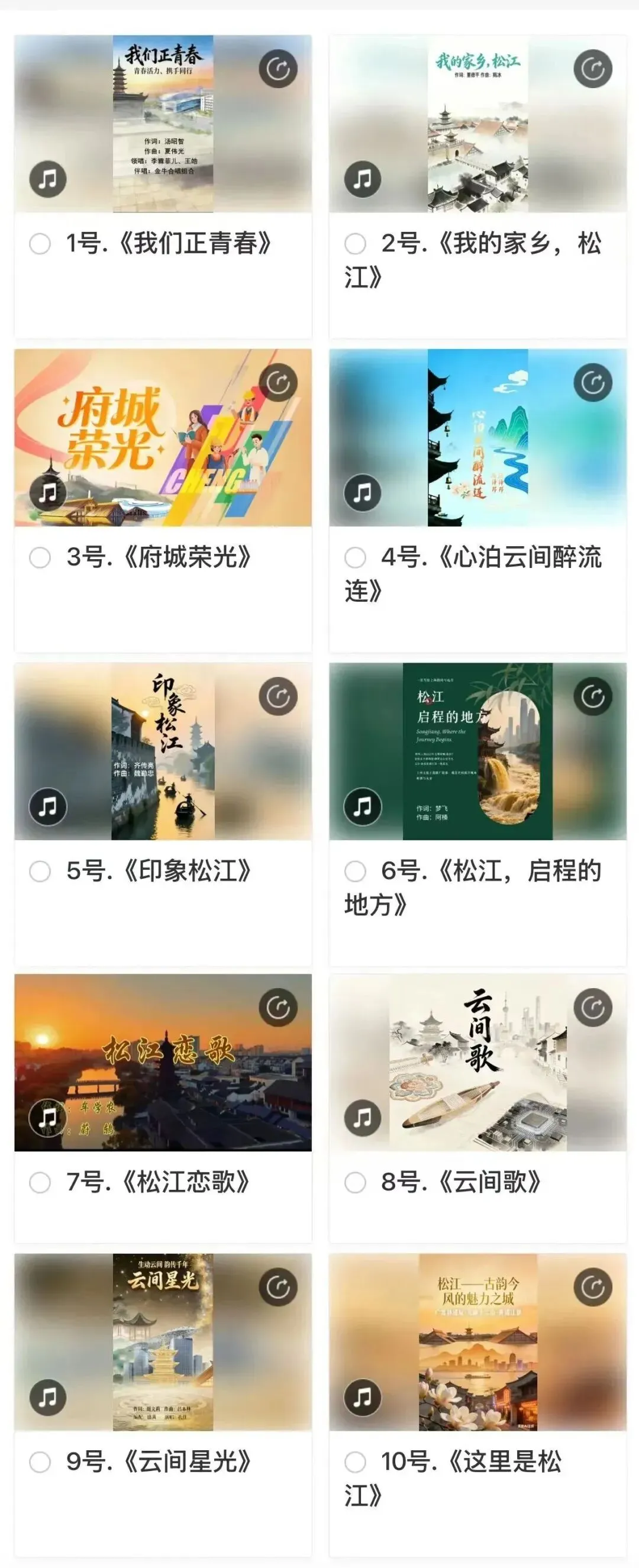 10首入围作品各具特色:有的以广富林、方塔为媒,彰显“上海之根”的千年文脉;有的聚焦科创云廊、AI小镇,展现科创新城的奋进姿态;有的勾勒九峰、浦江景致,尽显江南水乡之美;有的刻画从业者身影,传递奋斗的民生温度。作品以多元旋律讲好松江故事,兼具古今韵味与蓬勃活力。