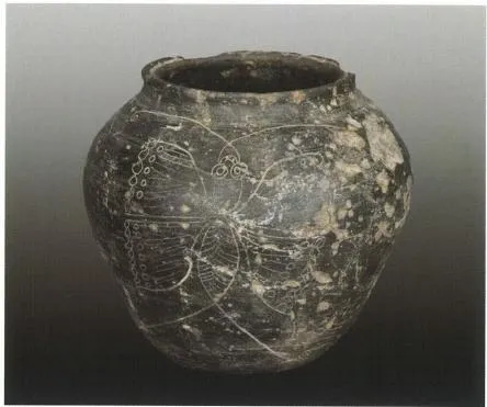 刻花黑陶罐